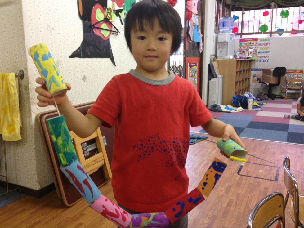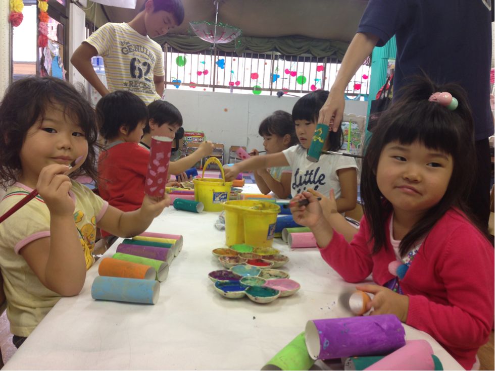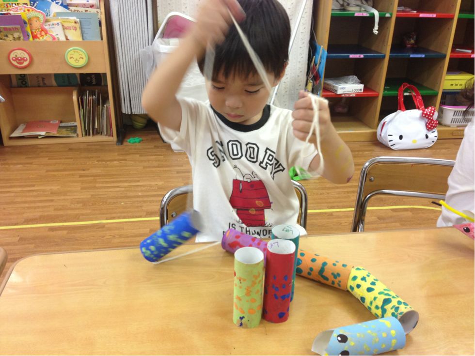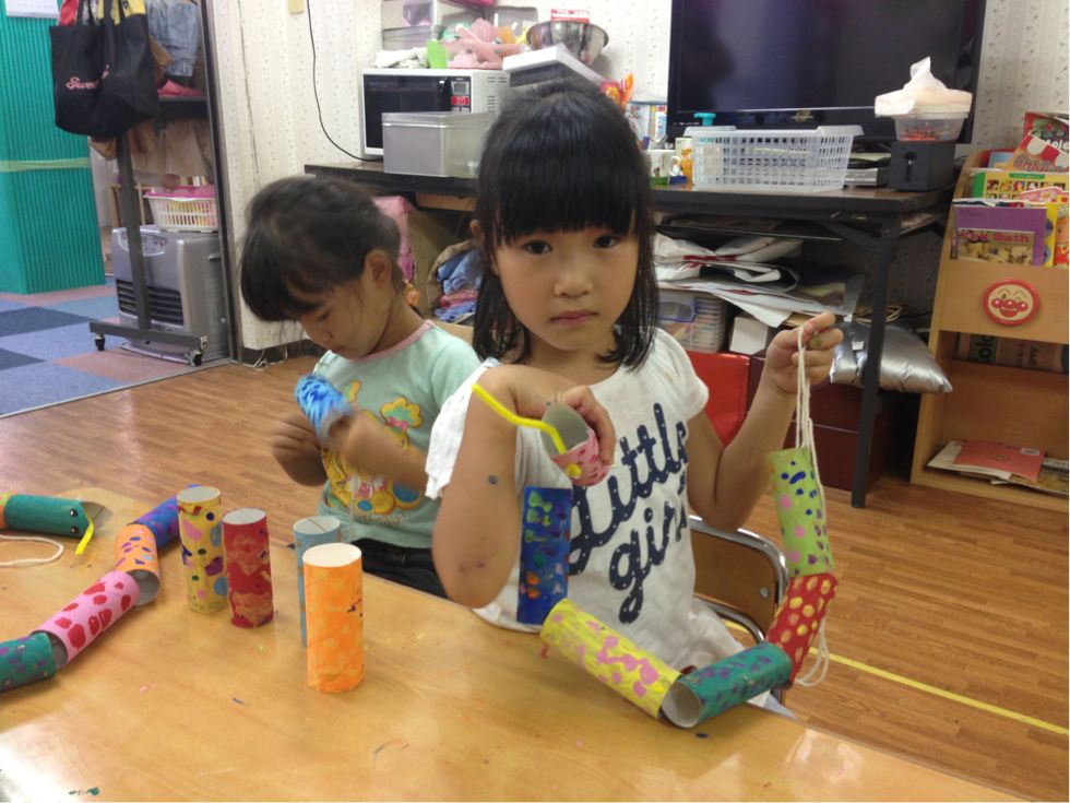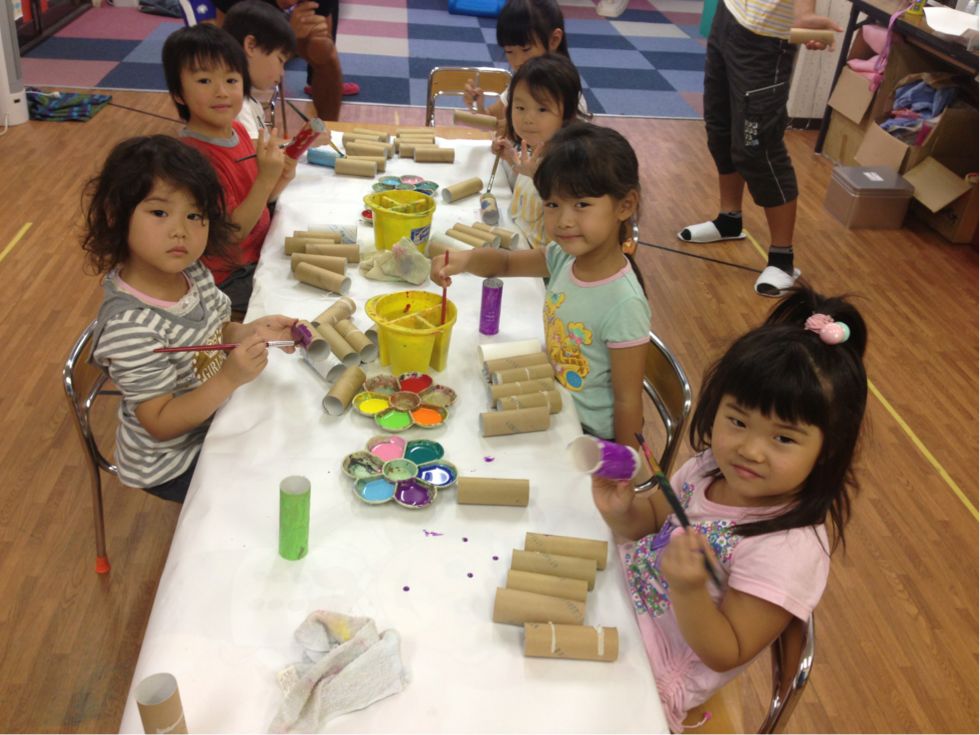 Today is the 6th day of our summer school. In the morning, we sang and danced. After that we painted toilet paper rolls.