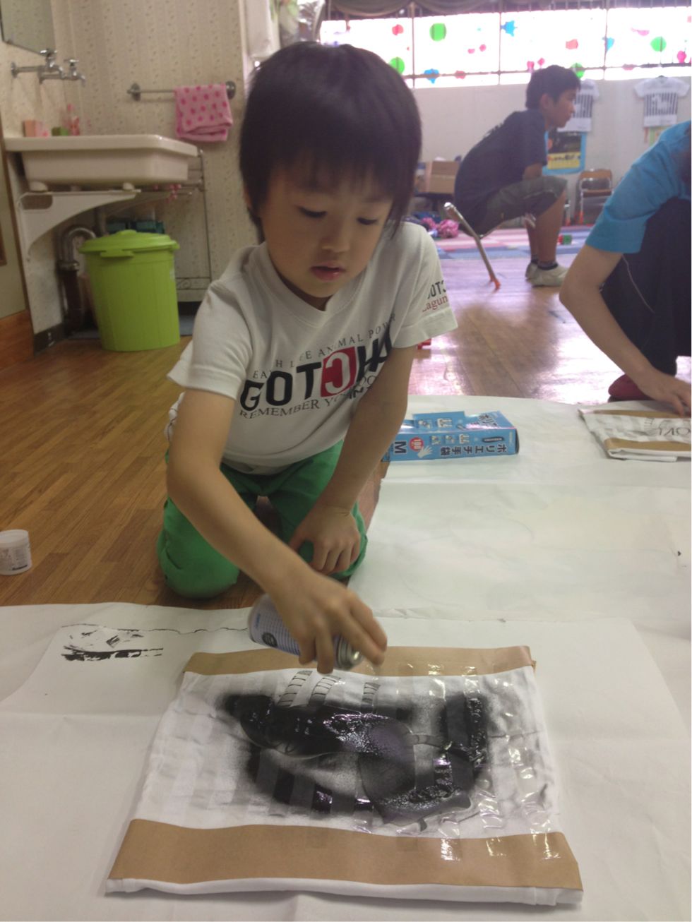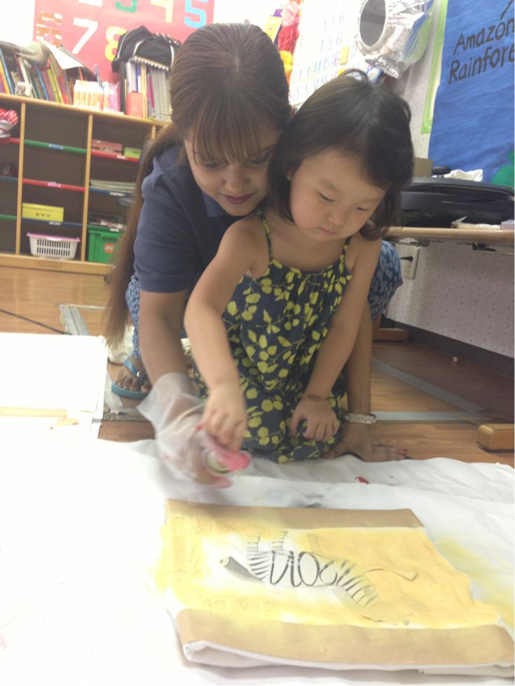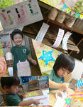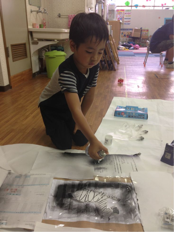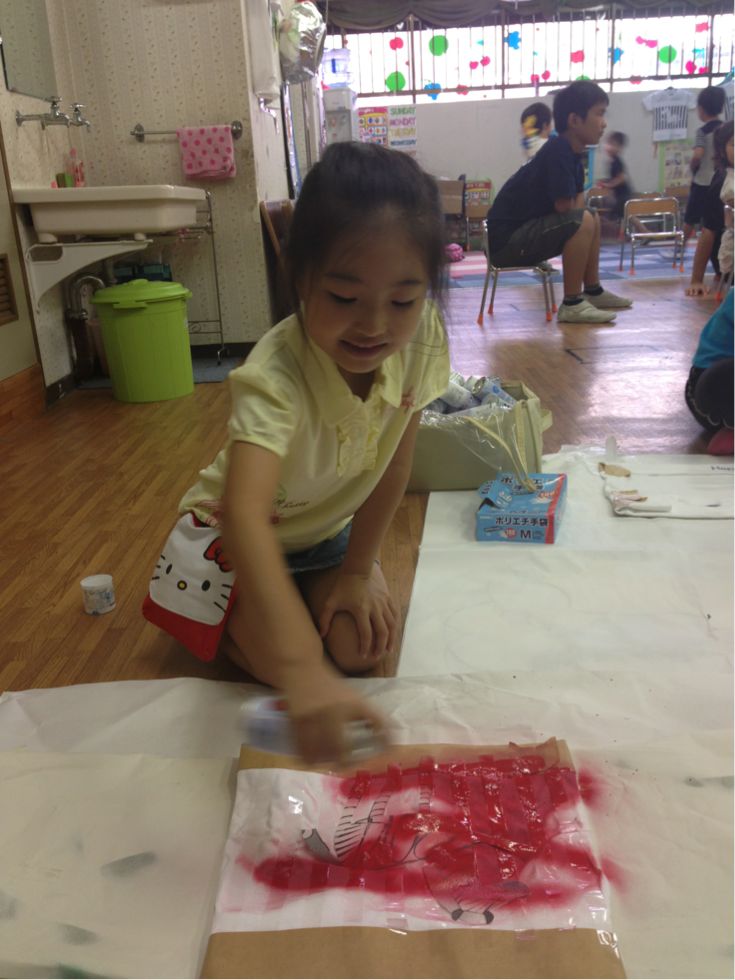 Today is the 6th day of our summer school. In the morning, we sang and danced. After that we painted toilet paper rolls.