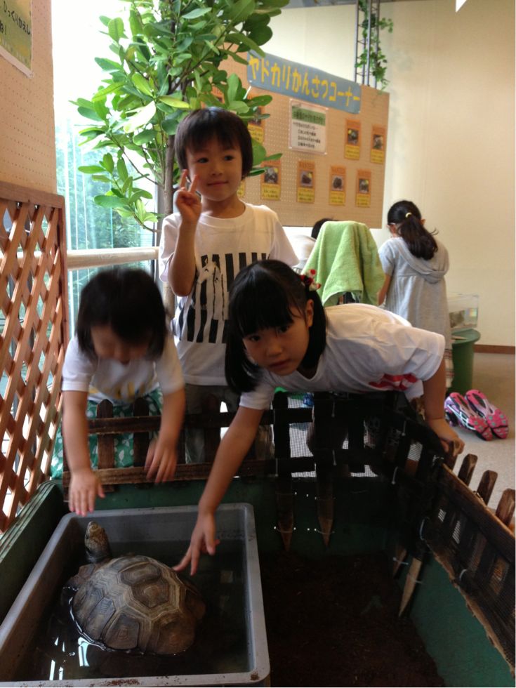 After that, kids touched turtle. It was exciting for them to touch living animals.