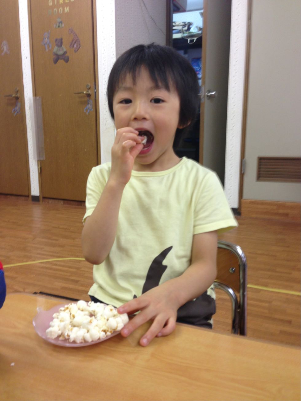 After assembly, kids had a snack time. They enjoyed eating popcorns.