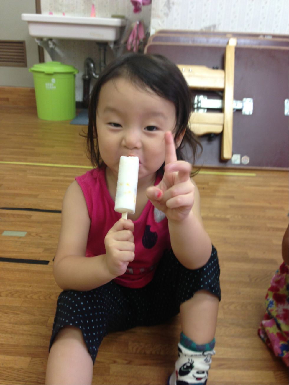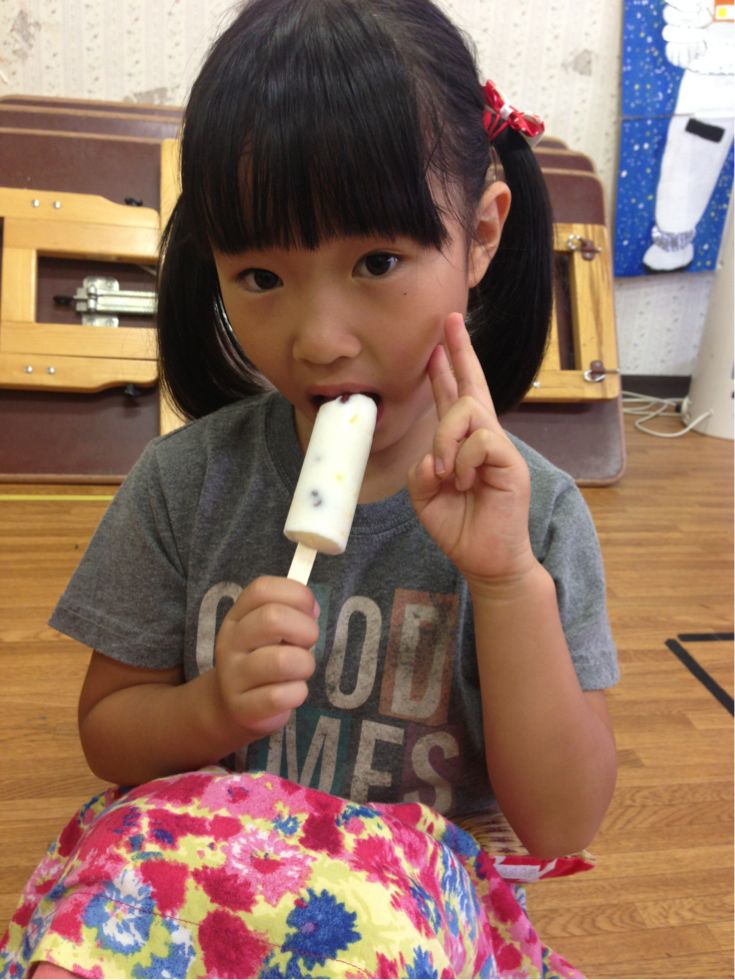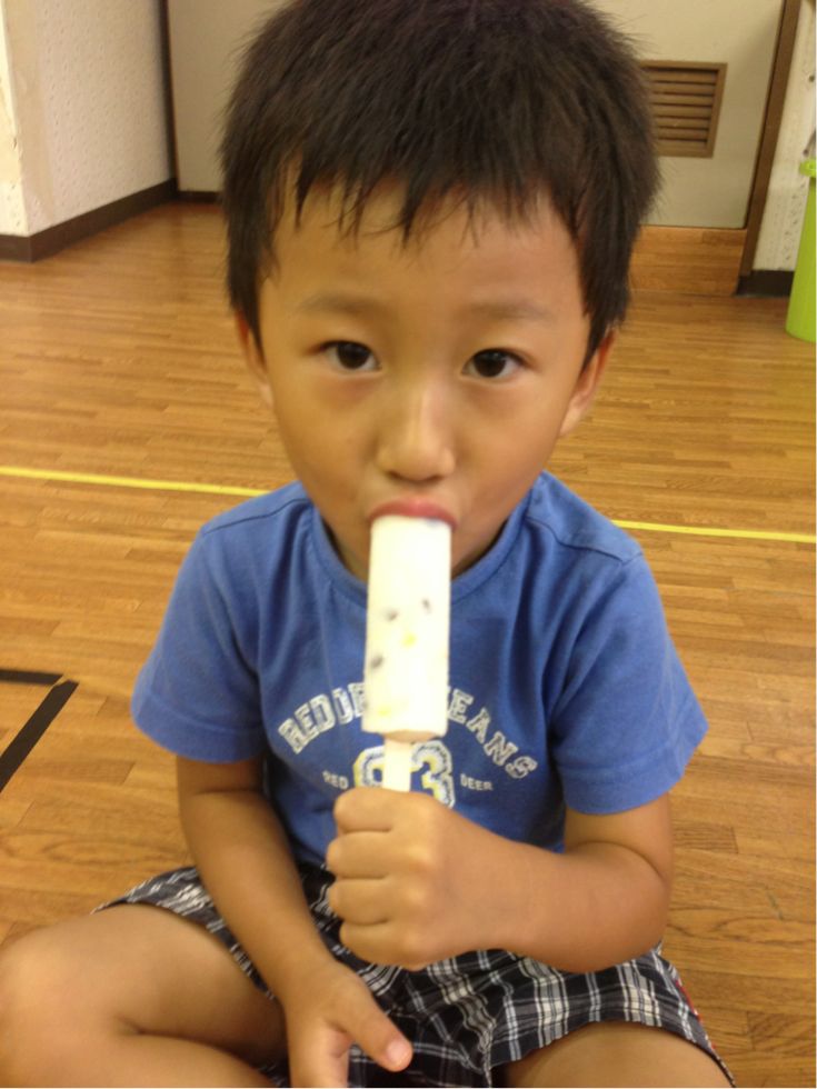 It was a hot summer day. Kids ate ice-cream. They were very happy.