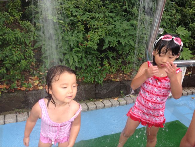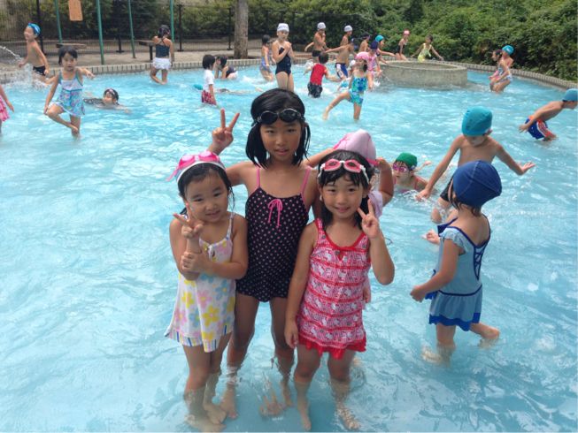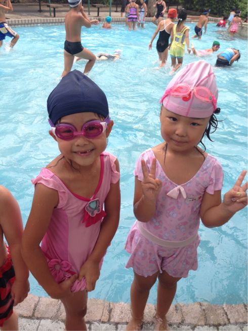 We went to the pool and enjoyed playing together.