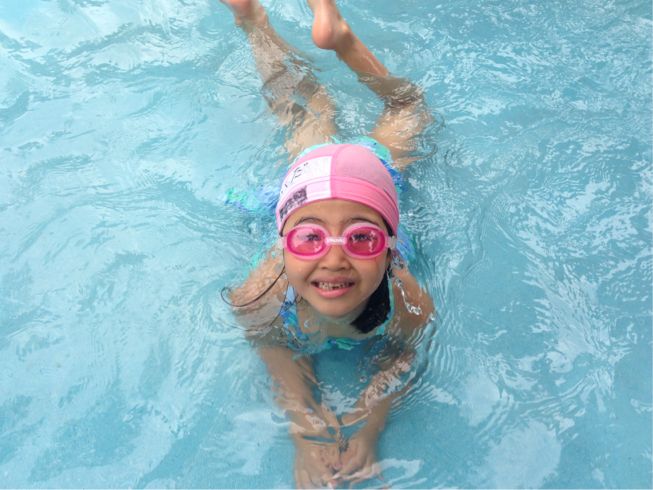 We had exercises and joined the pool.