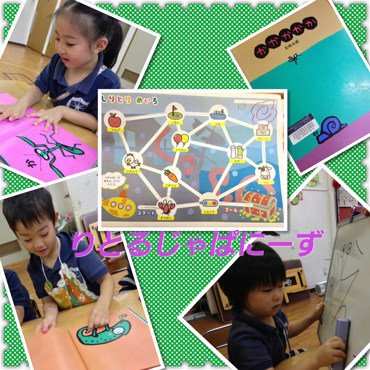 言葉遊ぶのは簡単ですが、プリントでしりとりをするのは初めてだったので、みんな興味津々で取り組めました