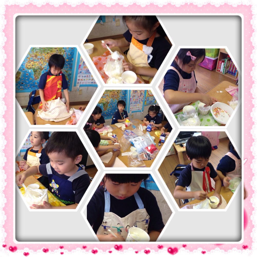 Lately it was humid and very hot. To cool down the children's body temperature, we made our home made ice cream