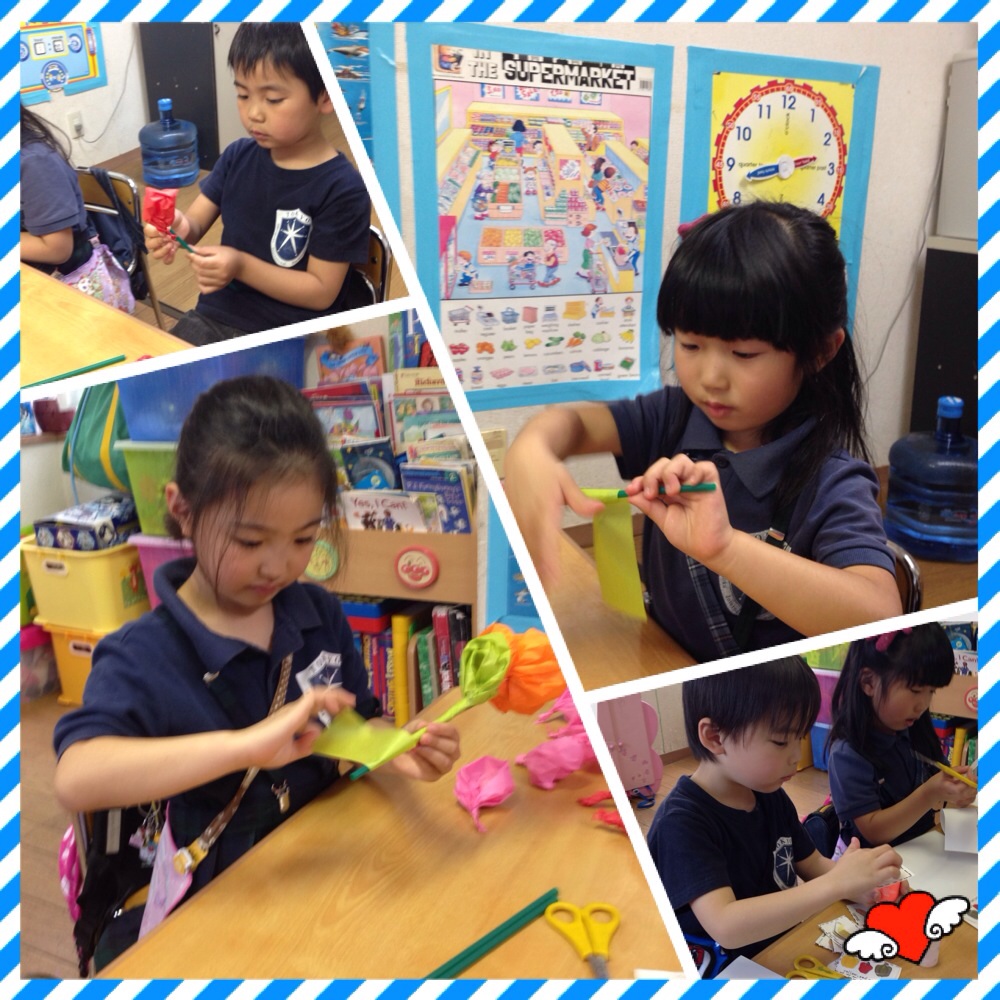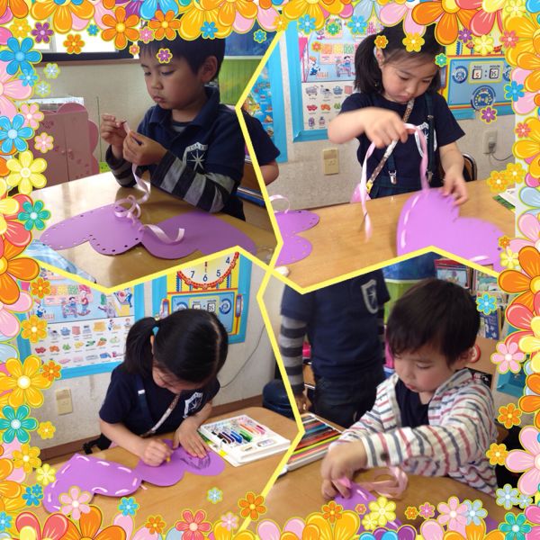 It's nice to see the children back to school. The day after we were back to school the children were already busy making cards and flowers for their mom on Mother's Day.