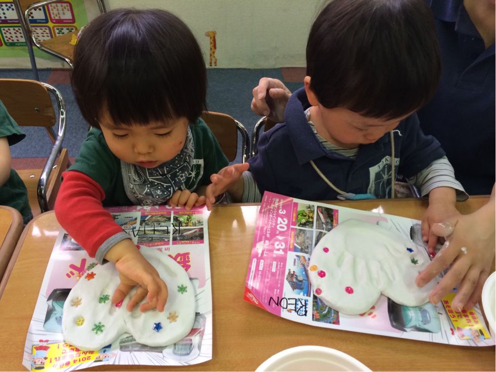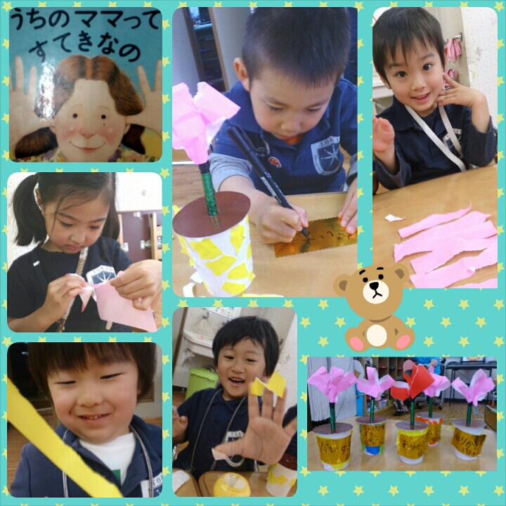 細かくちぎったり、ながーくちぎったり、お母さんへのメッセージも書いて、プレゼントを渡したらお母さん大喜びしてくれたね