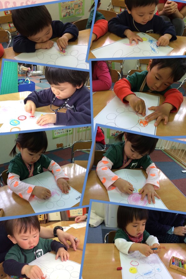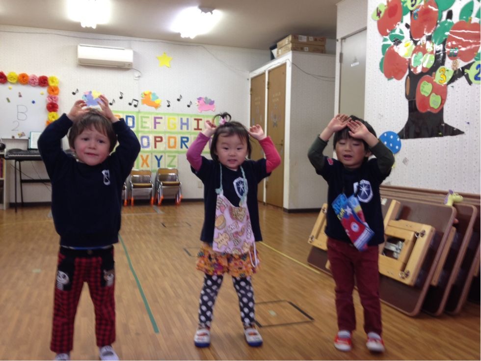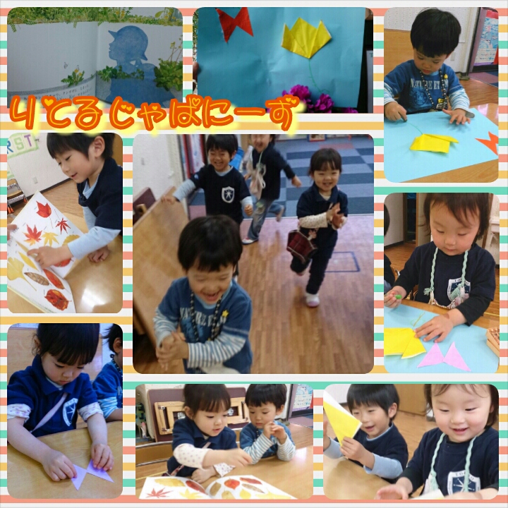 ちょうちょの歌に合わせて手でつくったちょうを飛ばせてみたり、「いろいろ何色??」と大きな声で言って色オニも楽しみました