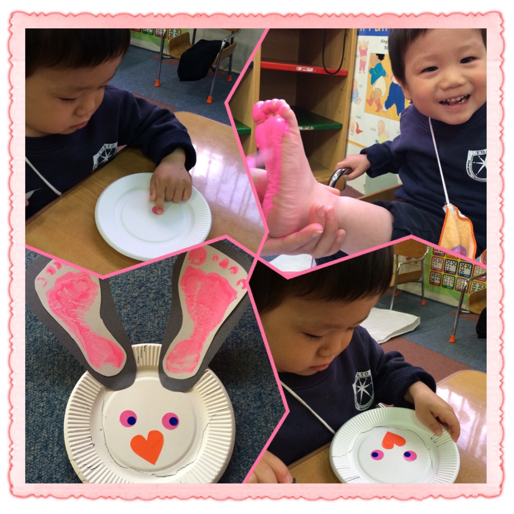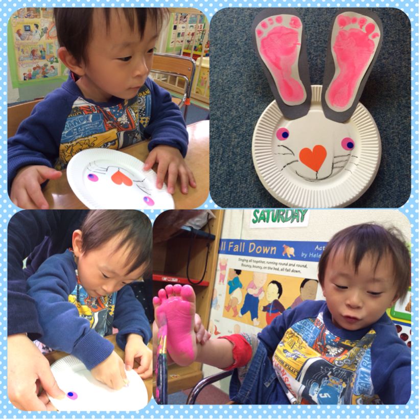 We started the week by making a bunny craft which had been really exciting because the kids got their feet painted for the bunny's ears...