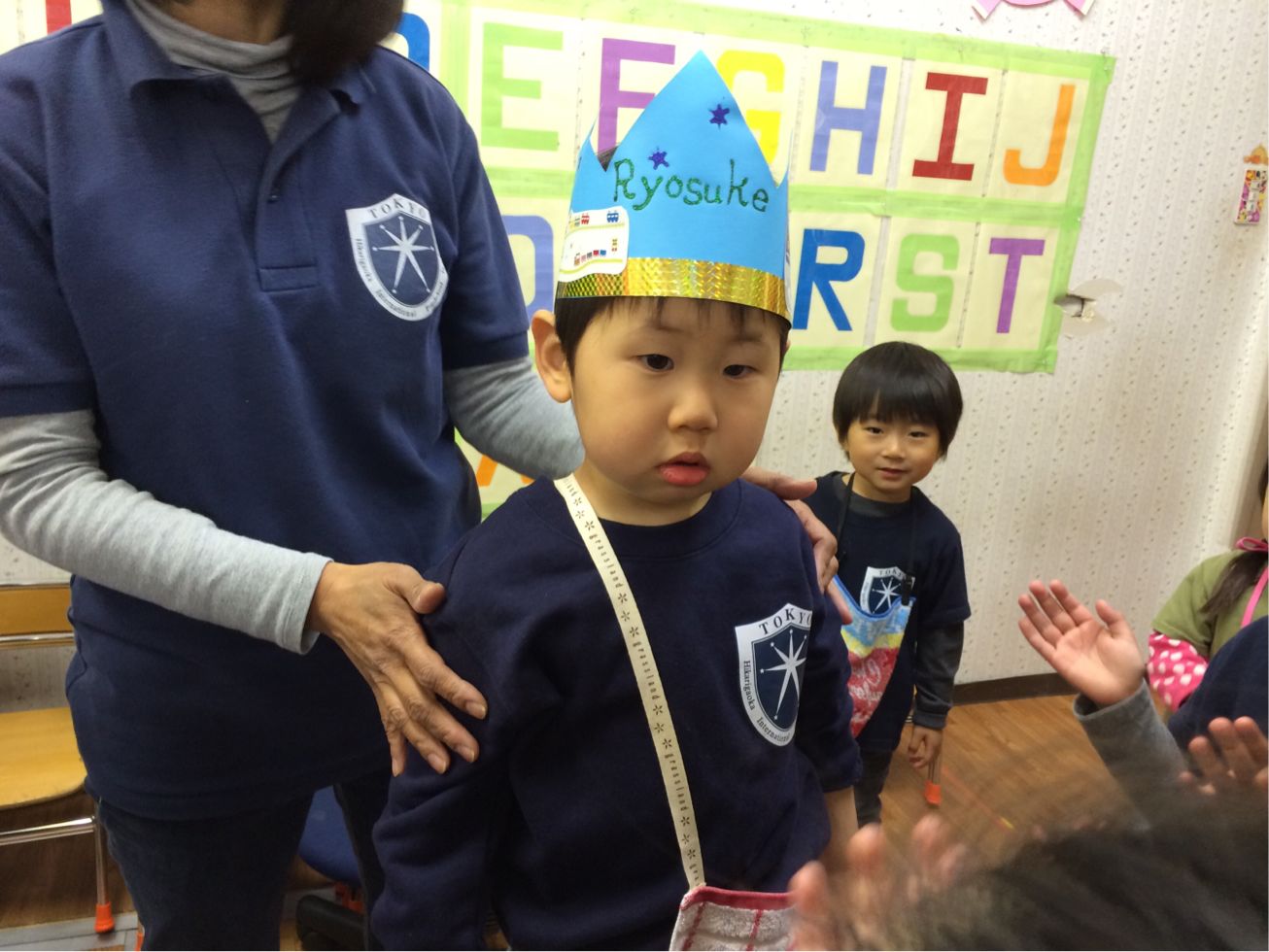 最後は遠くに離れたテーブルから、一文字一文字平仮名を探し名前作りをして、自分のお名前のなぞり書きをしました