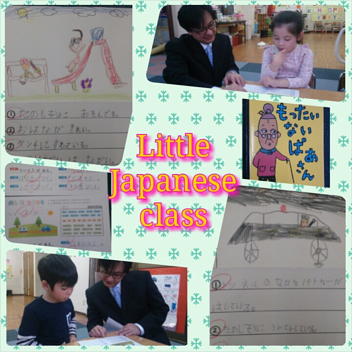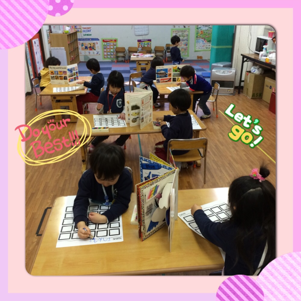 そして、その絵をもとに文章を作りました!園長のMr.Saitoからの指導もあり、最後には大きな花丸をもらって上機嫌の二人でしたっ