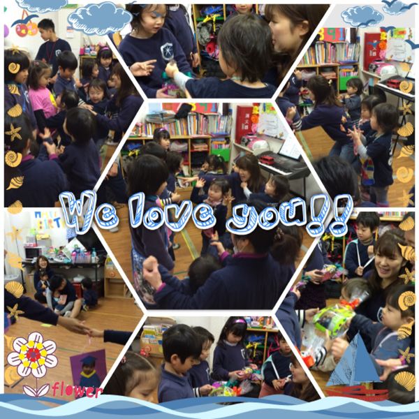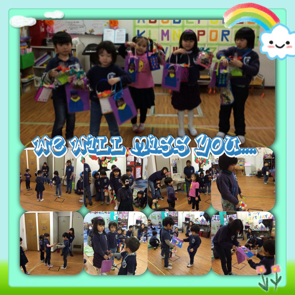 Last Friday we had a good-bye party for the Grape Class students. All the classes; Cherry, Apple and Melon Class prepared their gifts to Grape Class students.