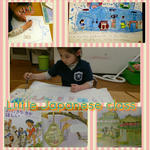 Frozenが大好きなEちゃんは、「わたしは、こおりでできたおうちにすみたいです。へやのなかは、あたたかくてきもちがいい…etc」と文章を作った後、クレヨンと絵の具を使って素敵なお家を描きました