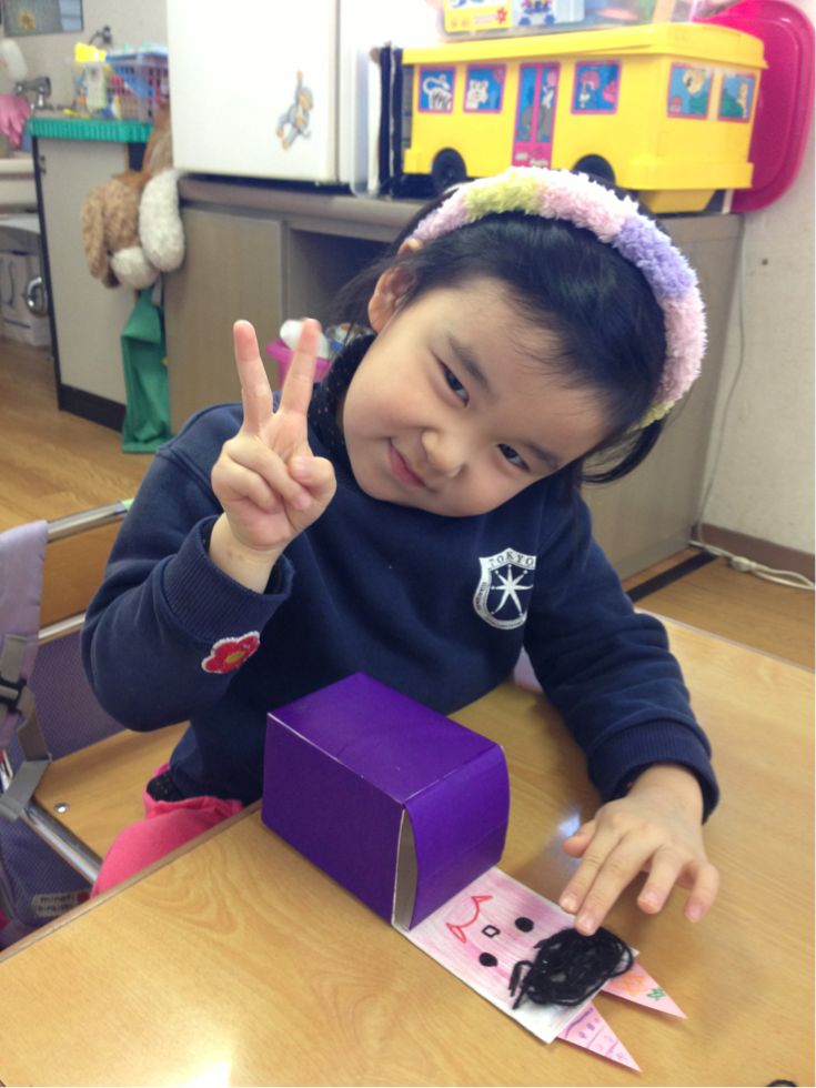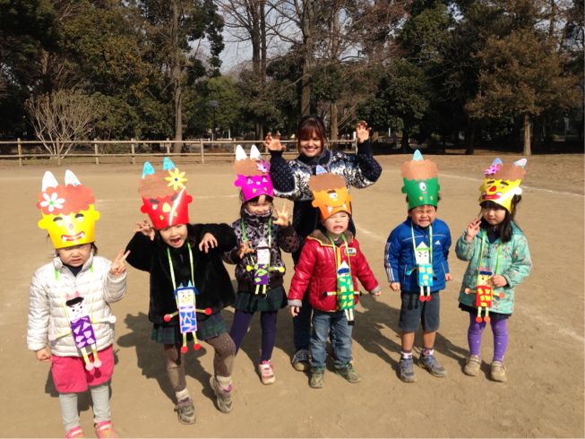 We have celebrated the bean-throwing festival(which is considered as the day of the beginning of spring in Japan). We threw beans to evil spirits which bring misfortune and bad health with them. Then as part of bringing luck in we ate beans . It was fun to make crafts related to Mame-maki festival and celebrate it.