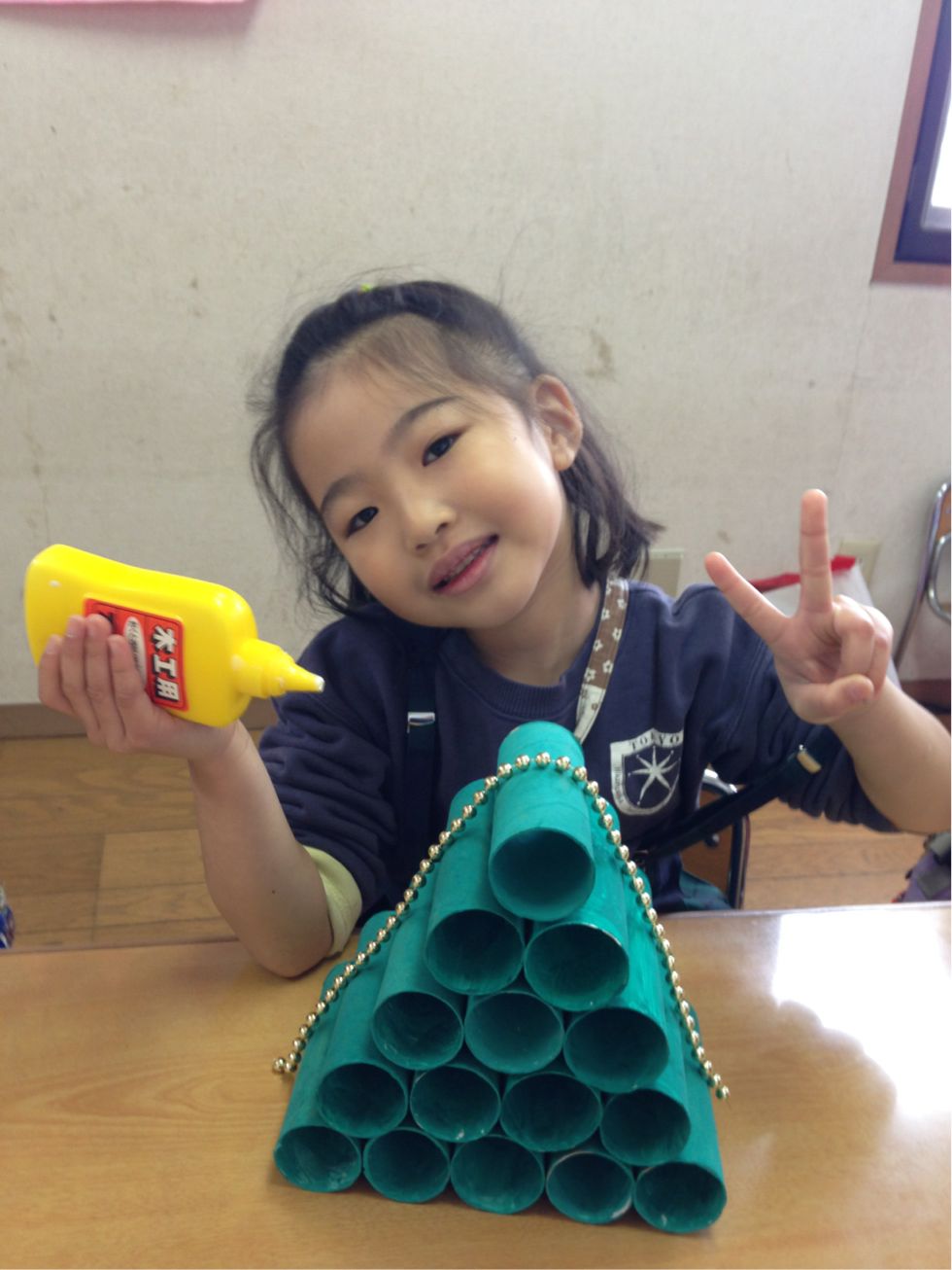 After that we dried them up & made a triangular shape. We decorated our Christmas tree.