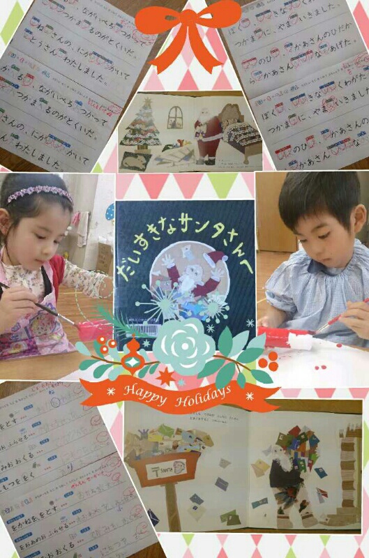 そして、少年がおサンタさんにお手紙を送る…という絵本を読んだ後、2人もサンタさんにお手紙を書きました