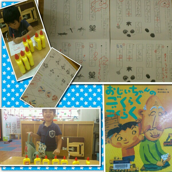 お友だちがお休みのため、プライベートレッスンになったLittle Japaneseクラス(笑) 秋の言葉を書いたあと、モンテッソーリ教育の指導法で、足す引くとはどういうことかを学びました