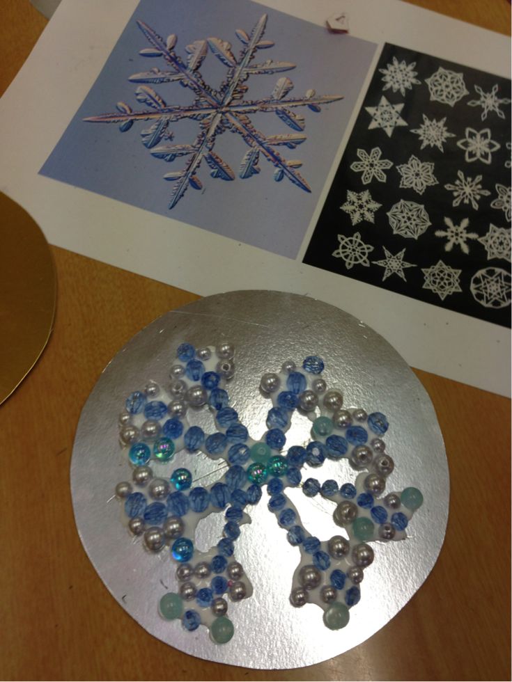 We also made snowflakes out of origami paper & we decorated it with beads.