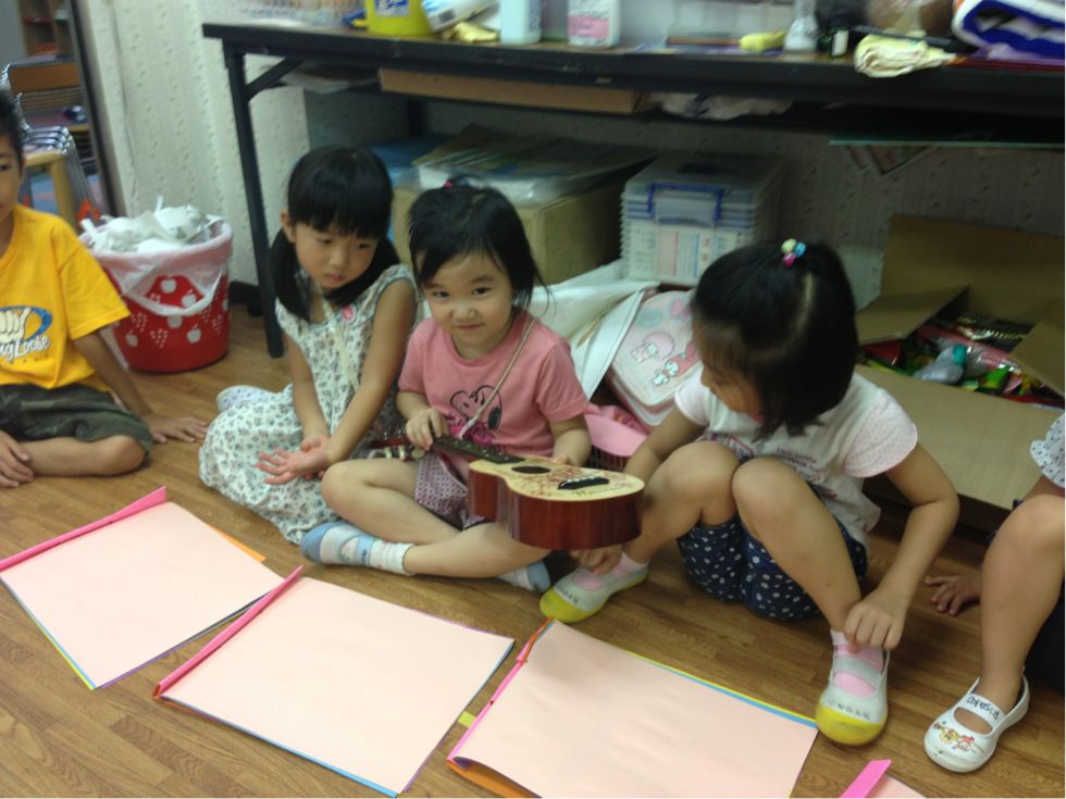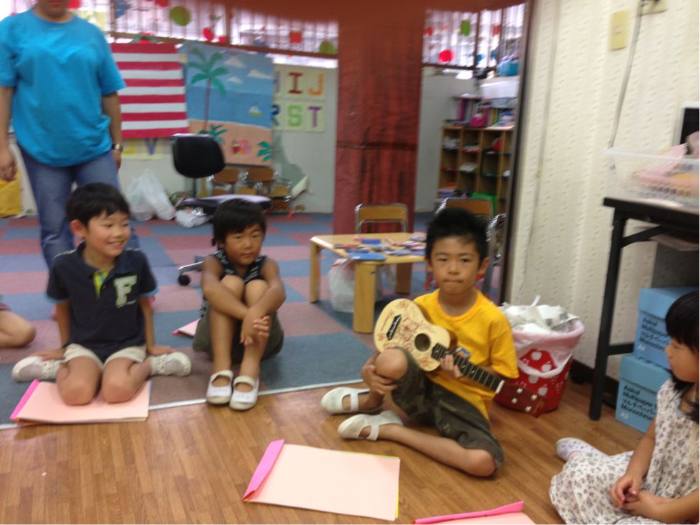 Today our theme was Hawaii. Hawaii is the only US state made up entirely of islands. In the morning we sang & danced. All the kids love the song 'In a summertime' by Mungo Jerry. Kids learned about Hawaii. They were interested in Ukulele. Some of them tried it.