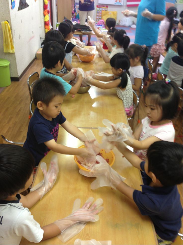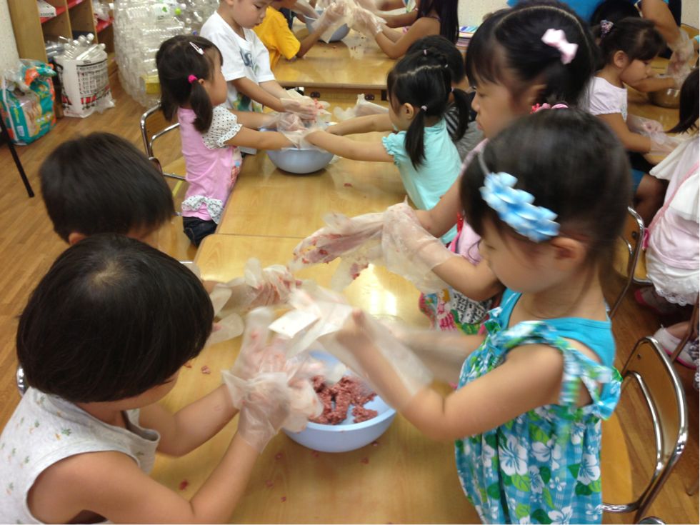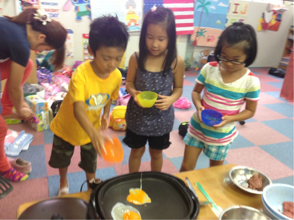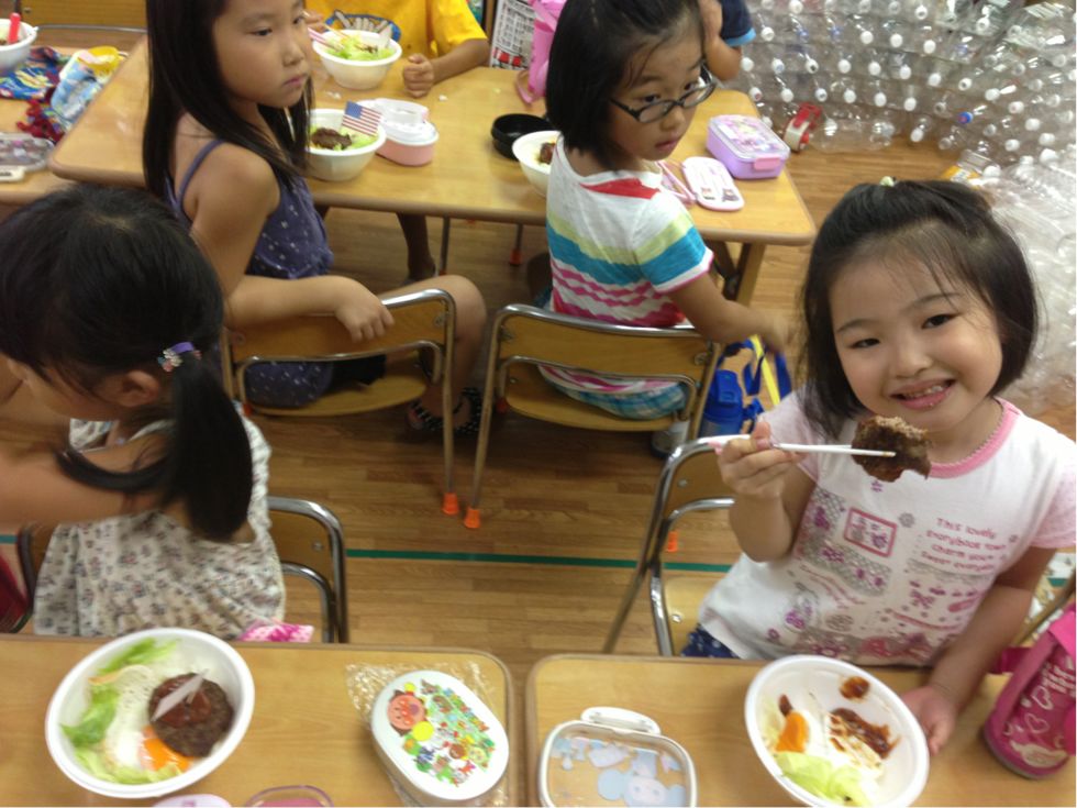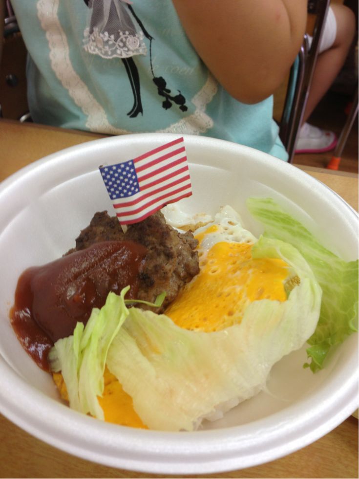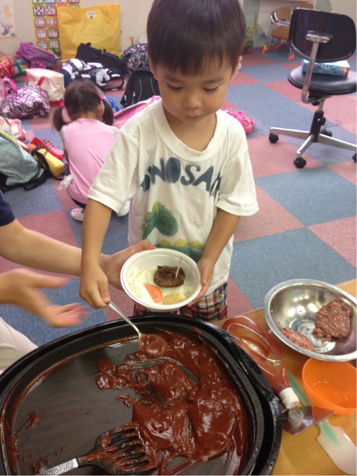 We made Locomoco for our lunch. Kids enjoyed mixing meat.