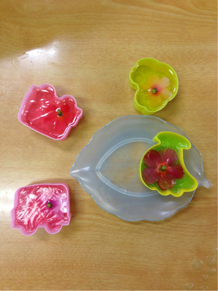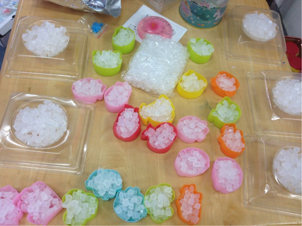 In the afternoon we made organic bath soap.At first , we distributed some small pieces of soaps. We had red, orange, blue & yellow soaps.