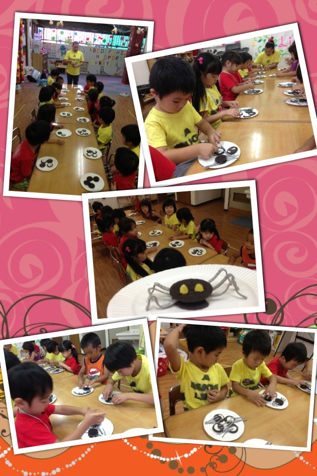 Today is the last day of our summer school program part 2: "A Bugs Life", but it didn't stop us from being busy. We started the day by making "spider cookies" for our snack..