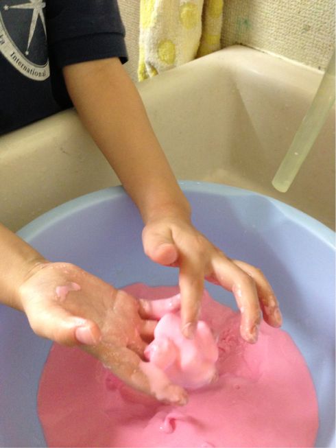 once they open their hands the cornstarch became water.