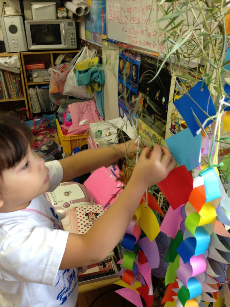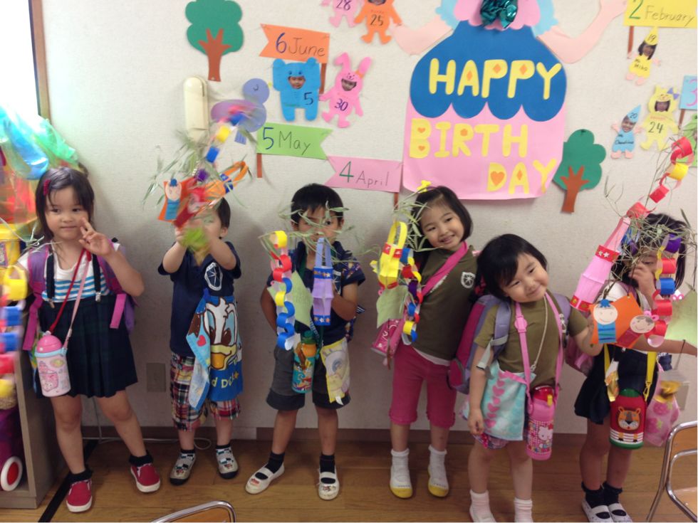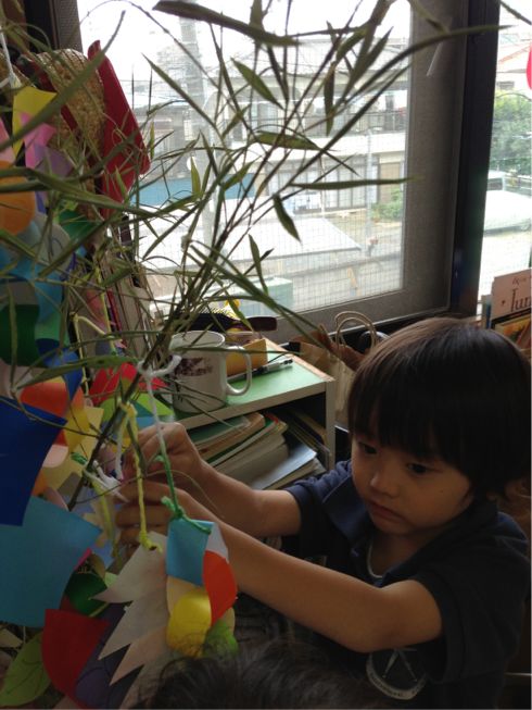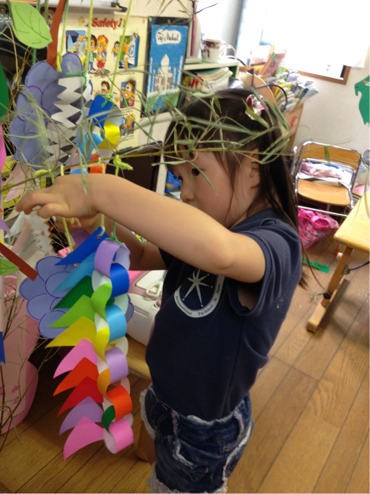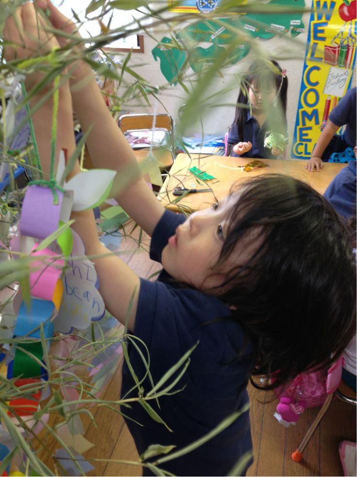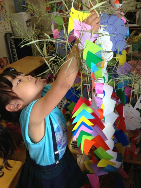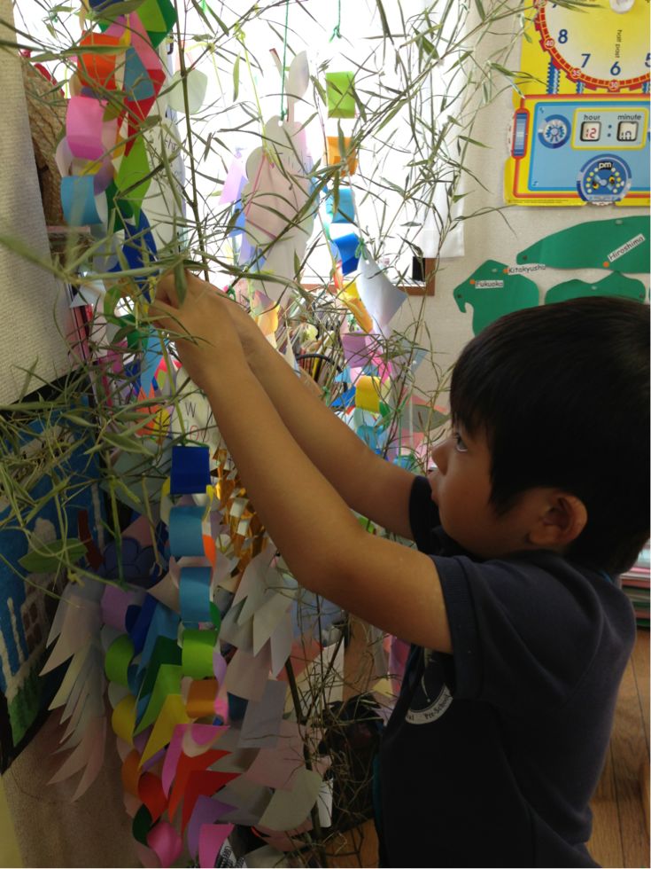 Last week, the children wrote their wishes for the Star Festival ( Tanabata), and made many kinds of decorations to hang on a bamboo tree.