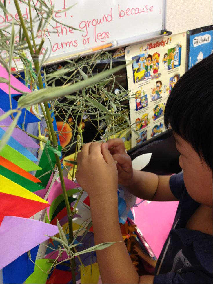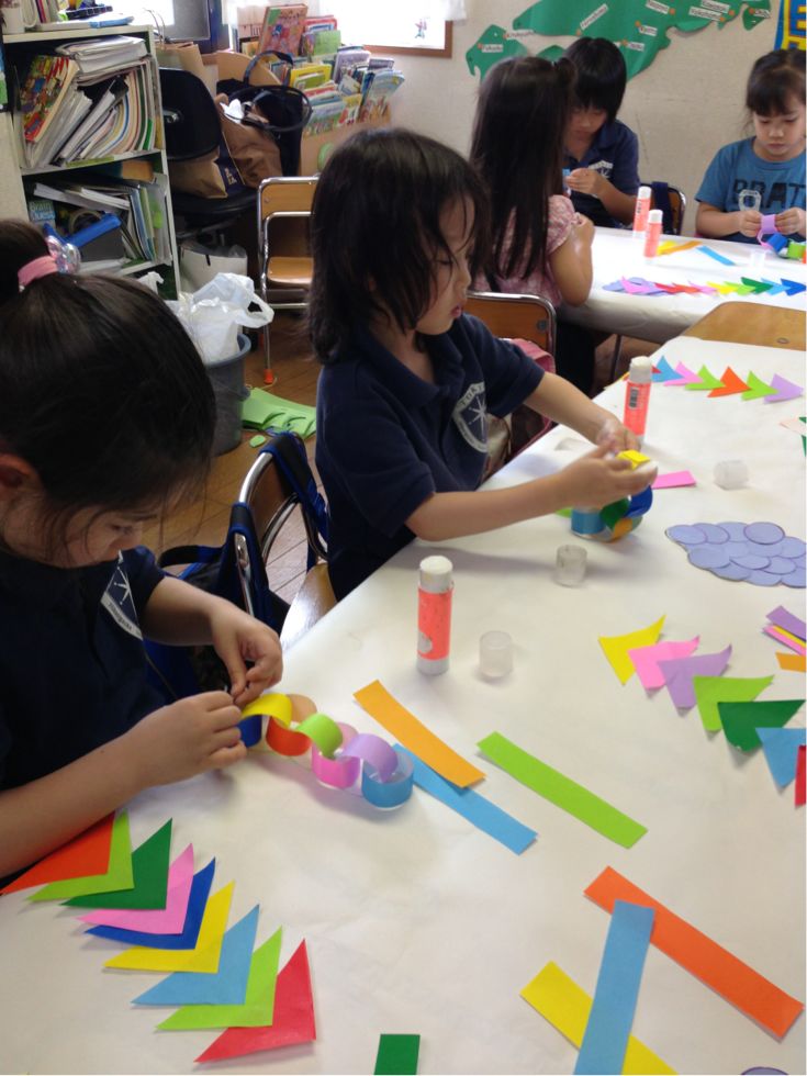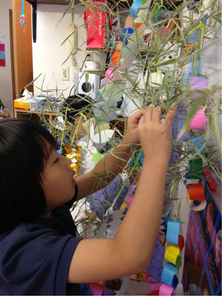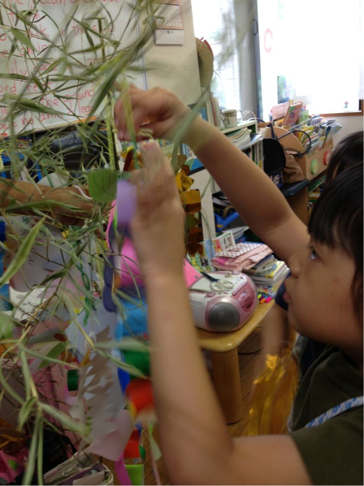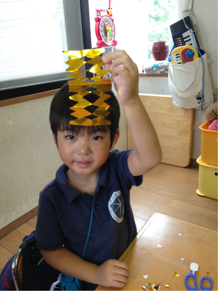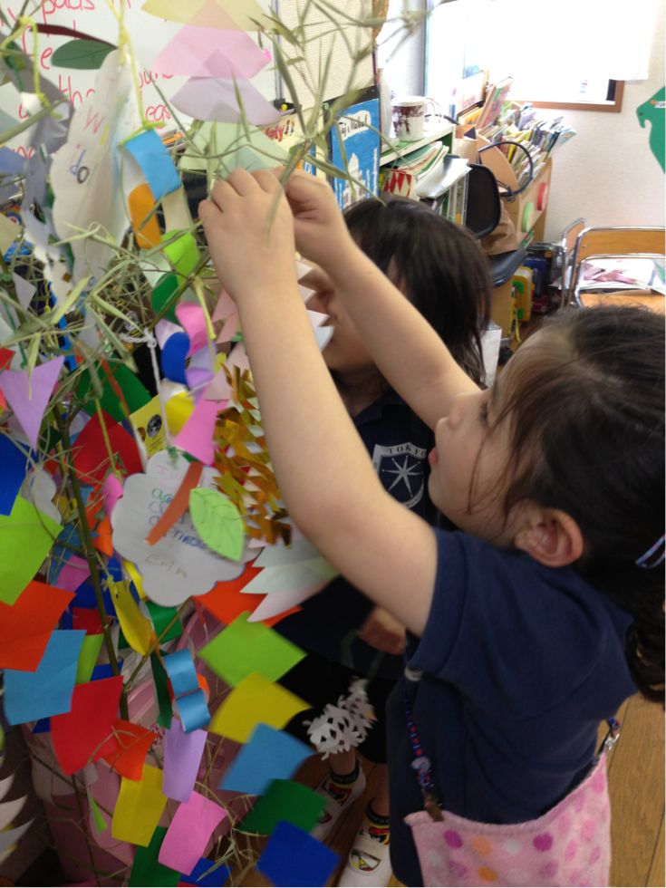 Last week, the children wrote their wishes for the Star Festival ( Tanabata), and made many kinds of decorations to hang on a bamboo tree.
