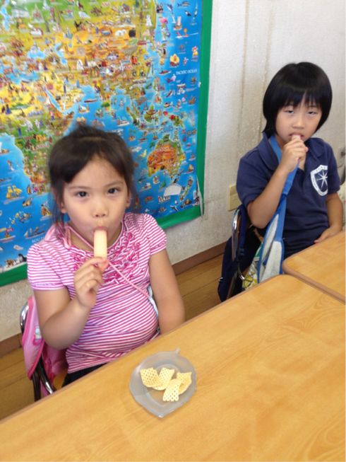 The temperature outside went up to 35 degrees two days in a row. To refresh a bit, the children had ice candies.