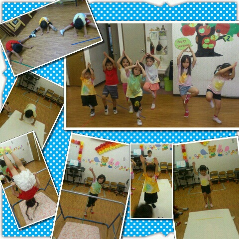 UKIUKid's 柔軟、創作ダンスで体を解した後は、鉄棒とマット運動