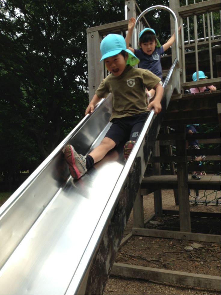 It's getting hotter and hotter, but this weather will not hinder us from having fun. The park is the place to have fun. First we went to the slide.