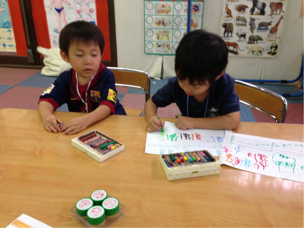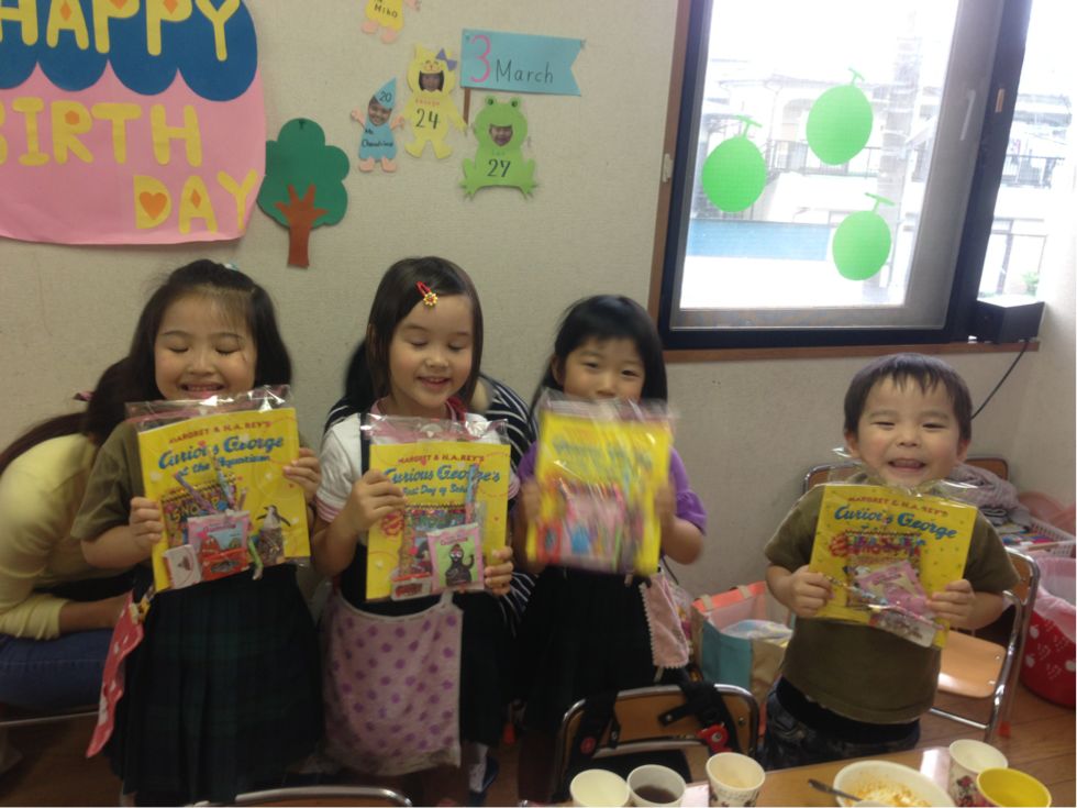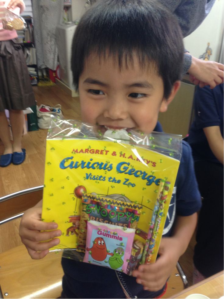 Little Japanese class,,,絵本のタイトルを読もうとするY君…