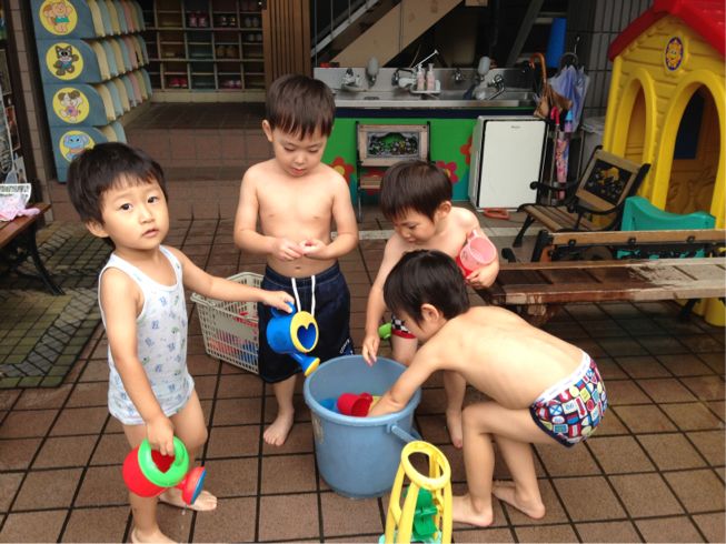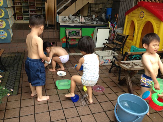 Summer time is slowly creeping in,so we let the boys play with water for a little bit when it's too hot to go out to the park...