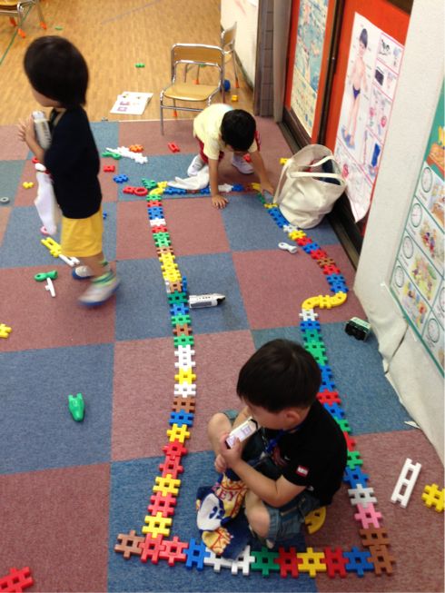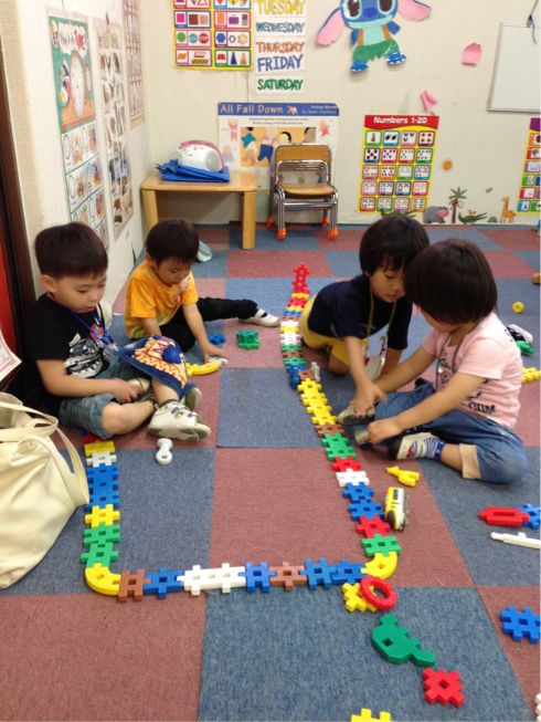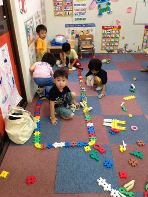 After lunch is play time and it's always fun to build train tracks if you build it with friends..