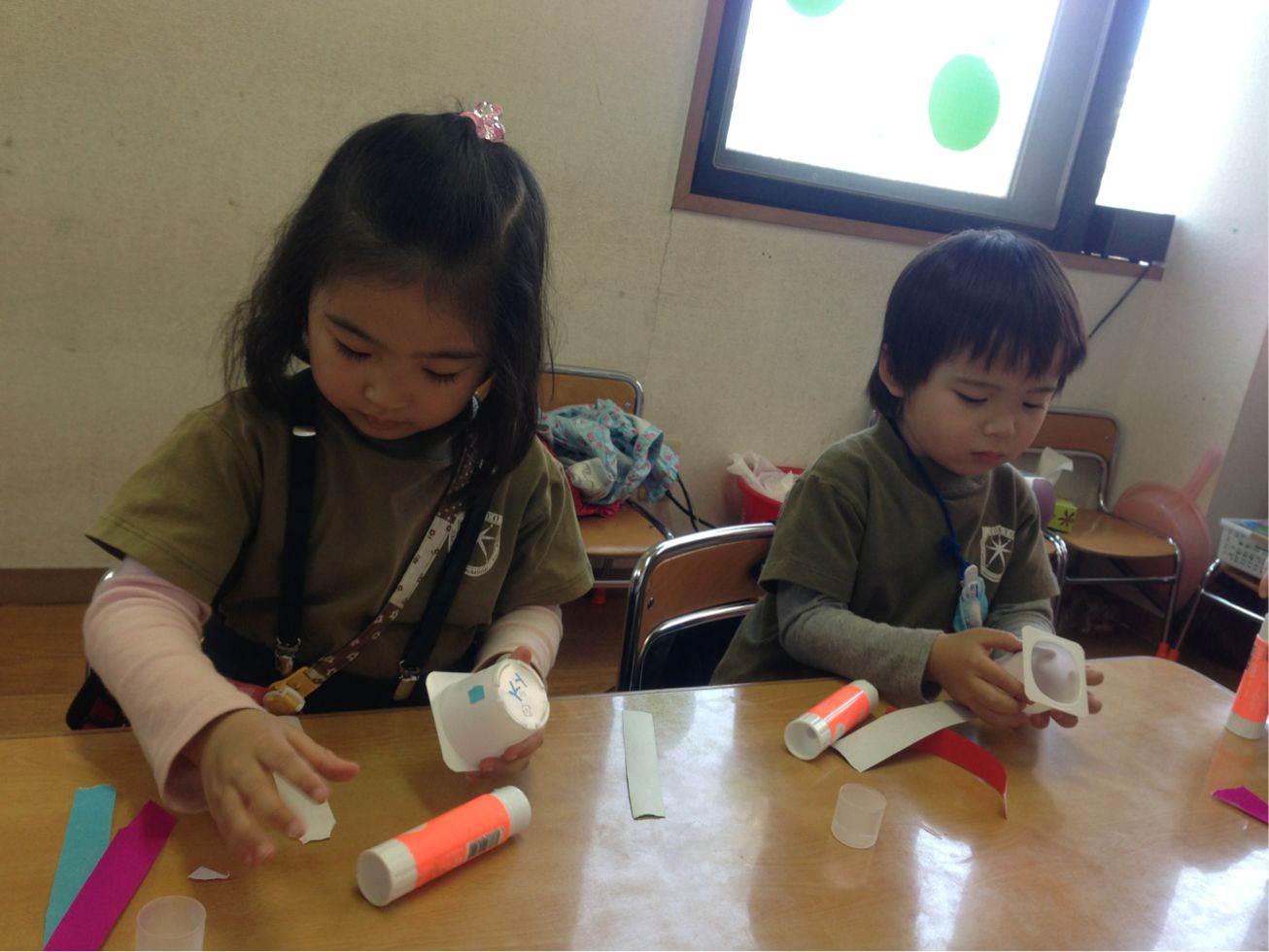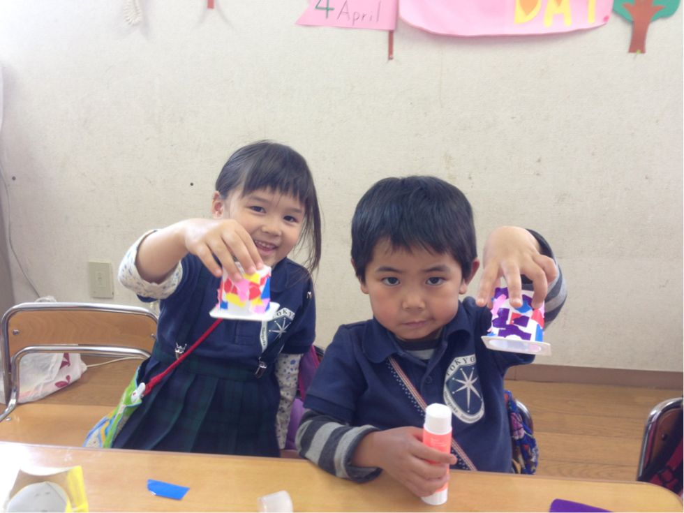 Welcome back to school after long Golden week. This week we studied “square” shape and did class-works related to this theme. Kids colored and pasted square shapes stickers.