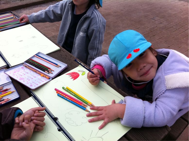 The children drew pictures after eating lunch..