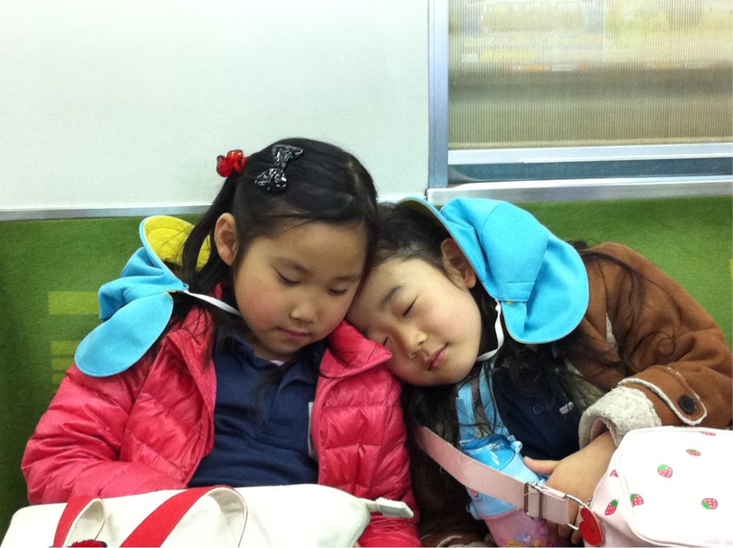 In the train, on the way back to Narimasu some kids were tired