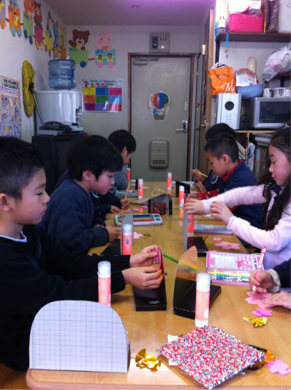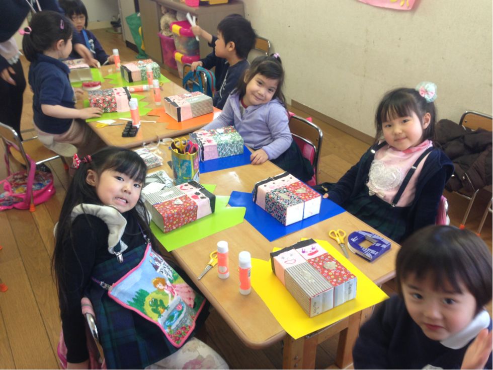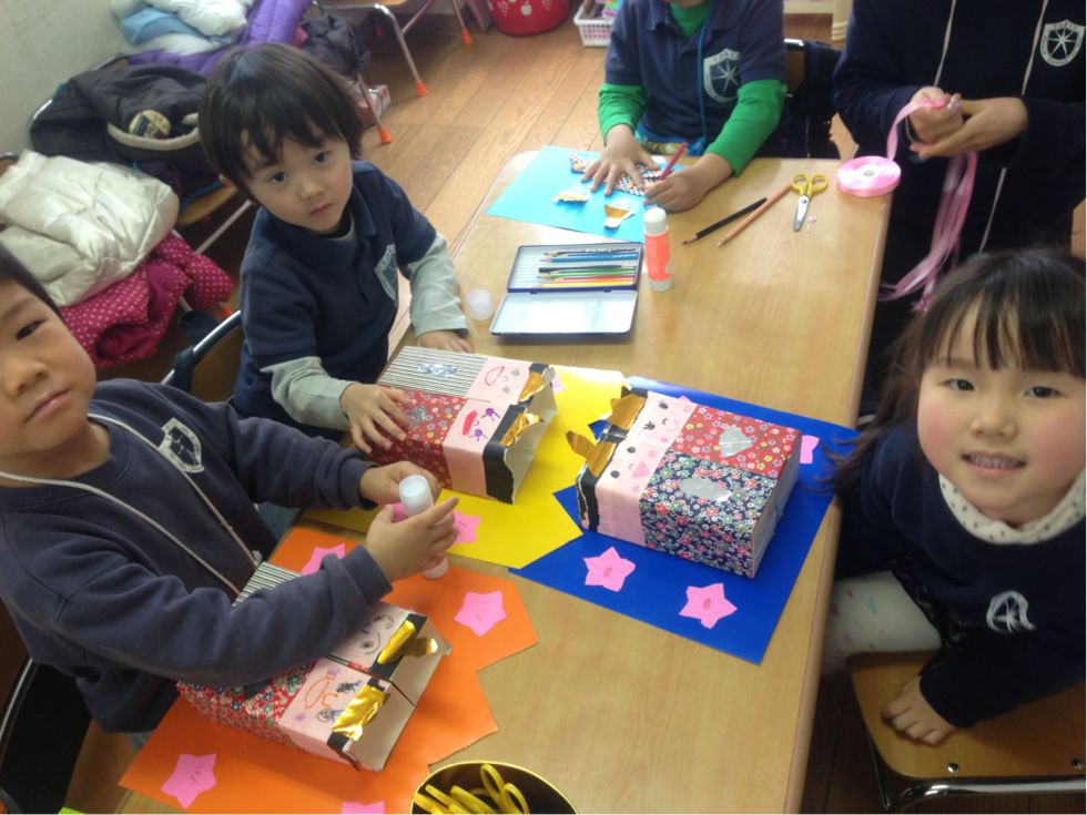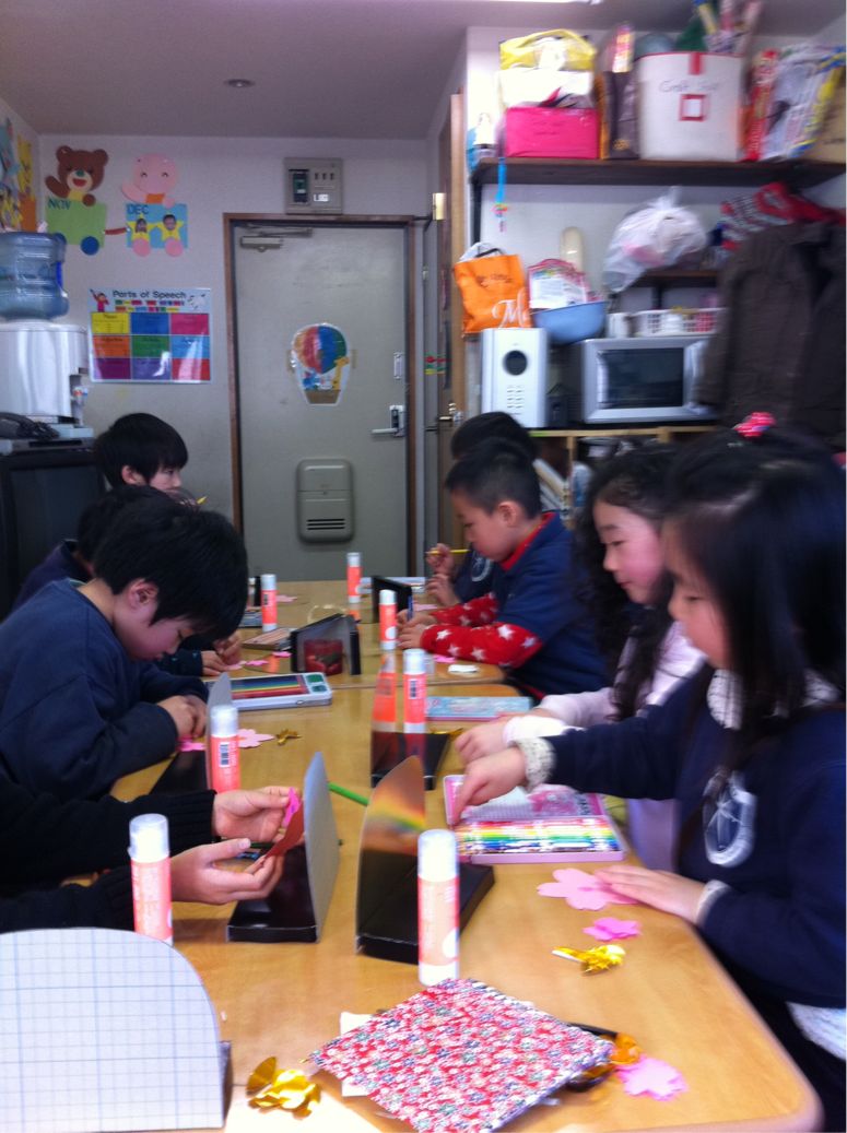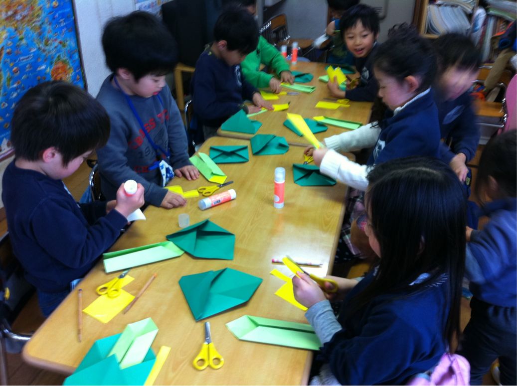 This was the first day of our class viewing. The children did wonderful job in creating their own news using their imagination. In the afternoon we made our craft for Hinamatsuri