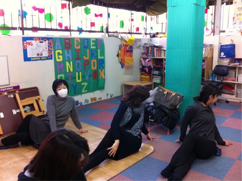 On the second day of class viewing, the moms who attended the class viewing joined us in yoga practice in the morning.