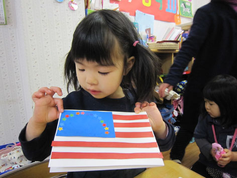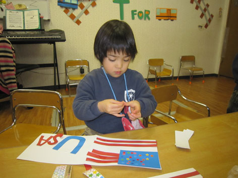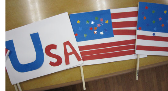 This week we did craft related to studying of ALPHABET – letter “U”. Kids made their own “U”SA flag with colorful stars on it.