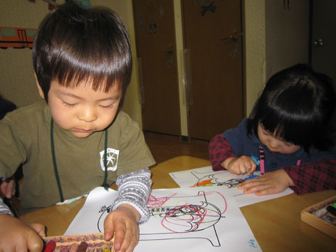 クレヨンと絵の具を使って、それぞれ素敵な絵を描き上げました