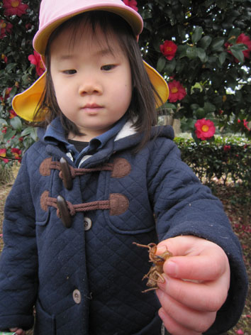 Even we had chilly – cold winter days continuing this week, we went to the park on Thursday and Friday. Running, screaming, throwing fallen leaves, looking for acorns, finding husks of cicada and playing with friends – every day is a big adventure for little Cherry-class-kids. And for us adults - we can only learn from them - the enthusiasm for exploring new things and ability of being happy because of small things around us.
