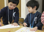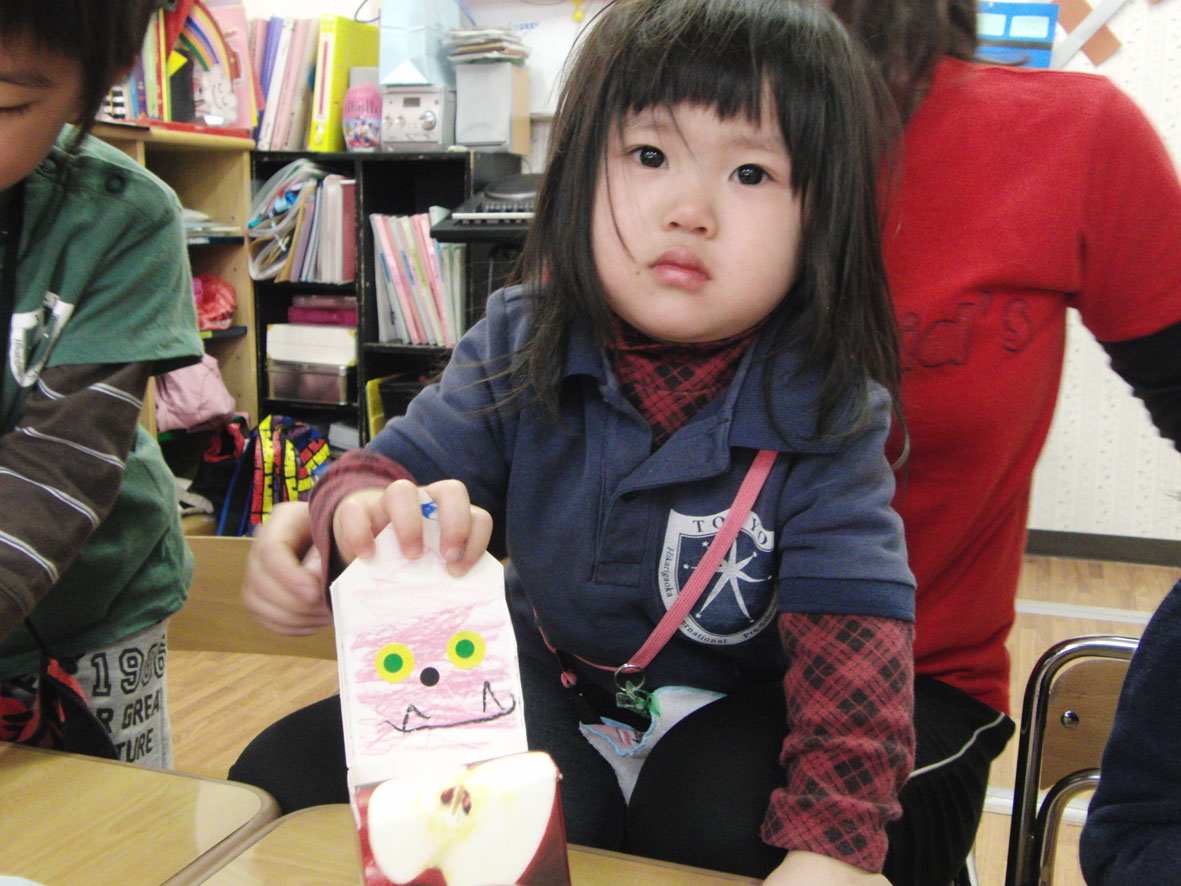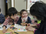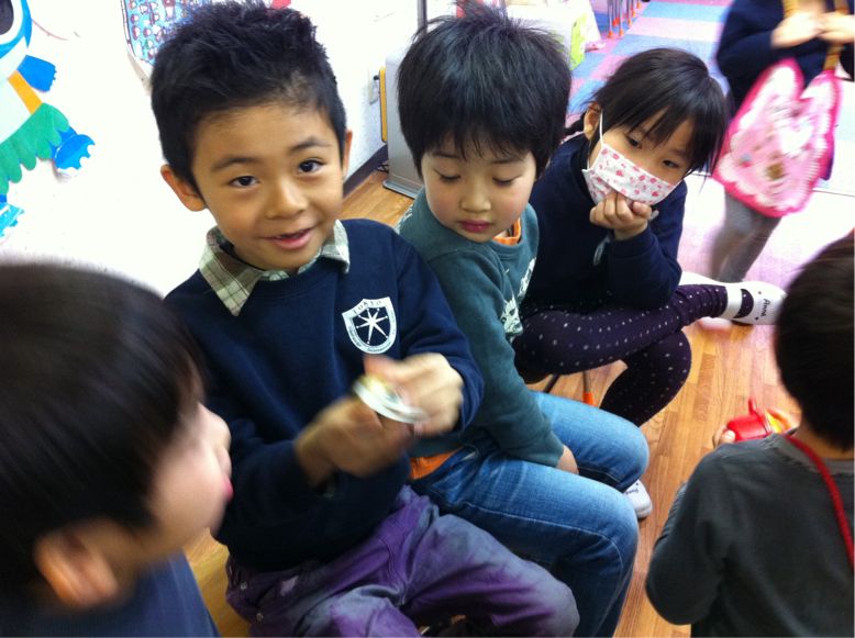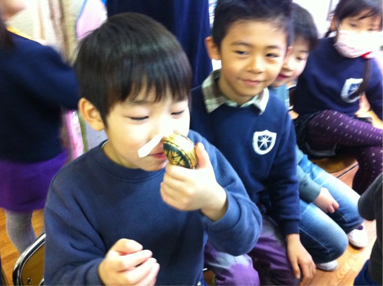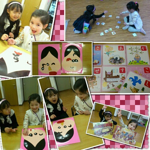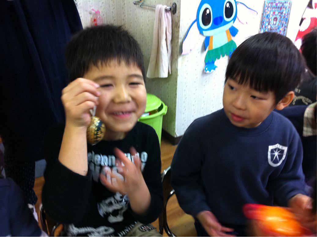 フラフープまわしがとーっても上手になって、先生もお母様もビックリLittle Japanese 自分で切ったパーツを使って、福笑いをしました