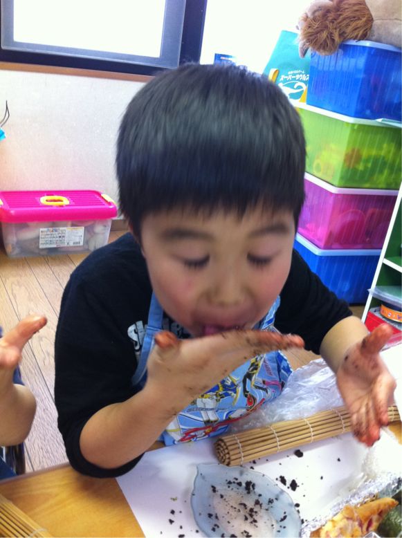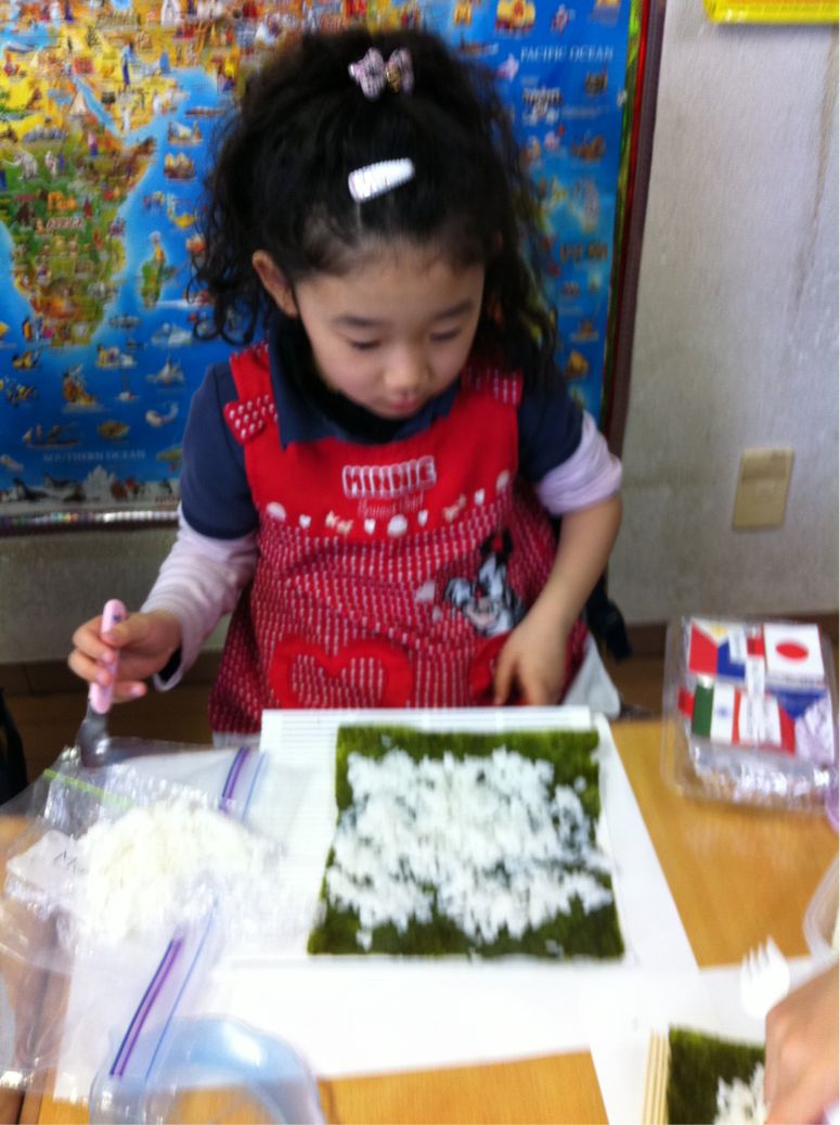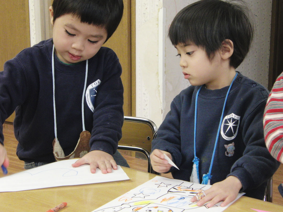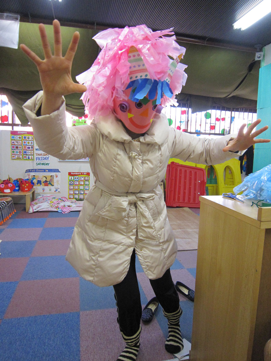 フラフープまわしがとーっても上手になって、先生もお母様もビックリLittle Japanese 自分で切ったパーツを使って、福笑いをしました