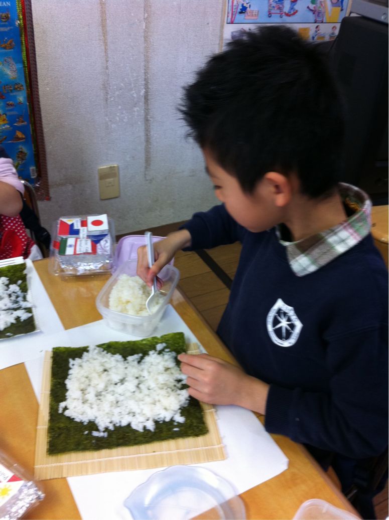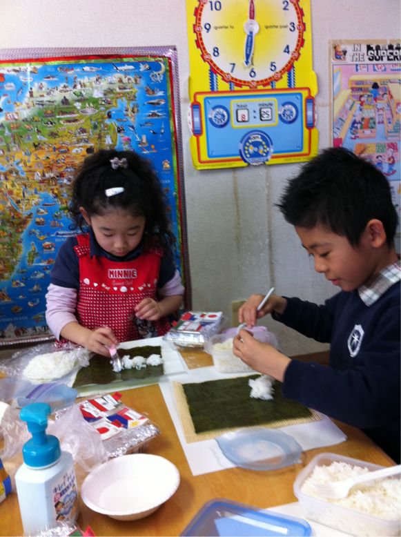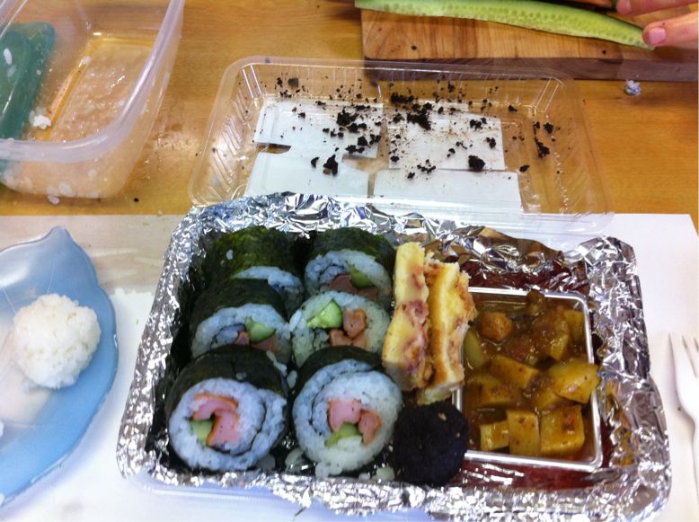 Grape Class prepared food representing each country; Kolac cake-Czech, Nori maki - Japan, Polvoron - Philippines and Keema Curry from India.
