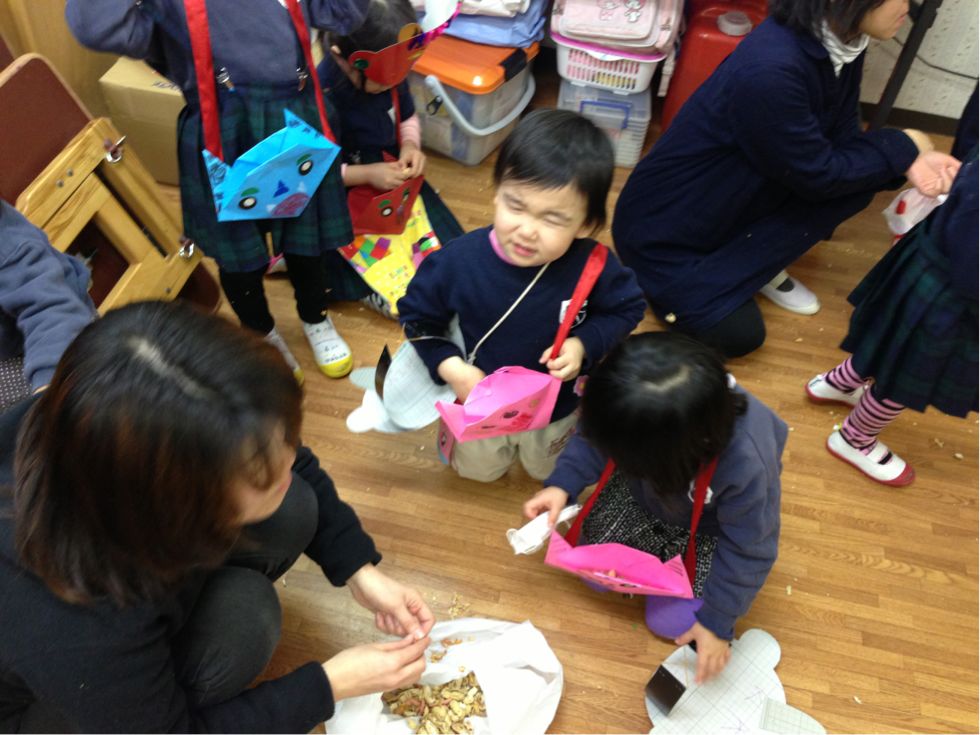 Today,we also did our Mame-Maki at the park and the children threw beans at the devils. Everyone had a great time...