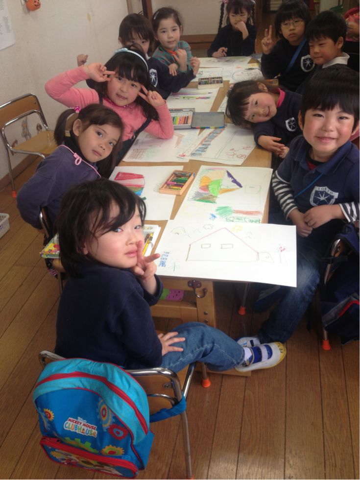 This month we did many crafts, coloring and drawing related to studying of alphabet, shapes,colors. Kids were excited making their own "T" train, "S" snake and world map of shapes.They enjoyed our Culture day too(at least I hope so...). By watching czech animation movie about little mole and his friends, seeing and touching of souvenirs from Czech,seeing pictures and listening explanation about them, they've got little bit familiar with diffrent culture and they are starting to be little 国際人.
