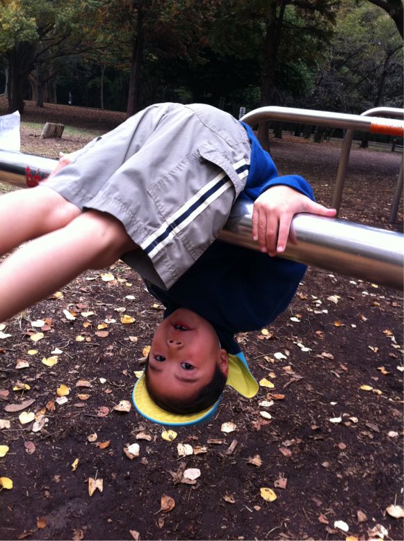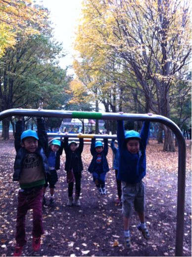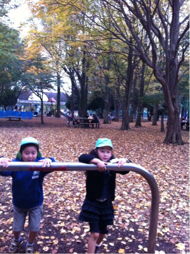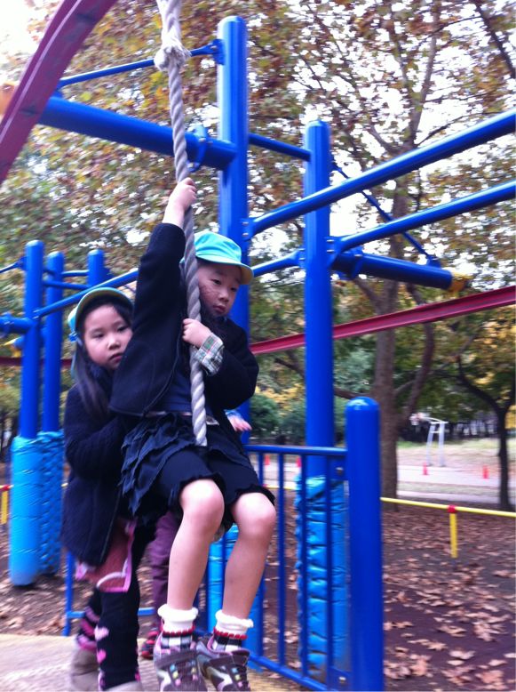 Going to the park is really fun! Even it's quite cold the children enjoy playing . First we went to play at the metal bar
