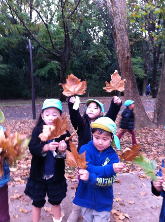 秋になると葉っぱは何色になるかな、“いちょう” “もみじ”の名前も覚えたよ